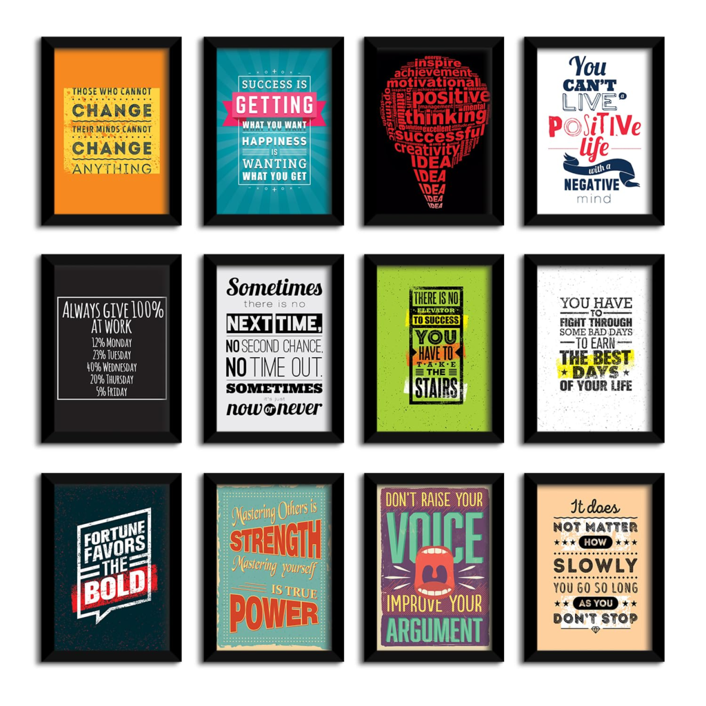 KRAYOG Set of 12 Motivational Framed Wall Posters – Inspirational Quote Wall Art Paintings for Home, Office & Bedroom Décor, Multicolor Design