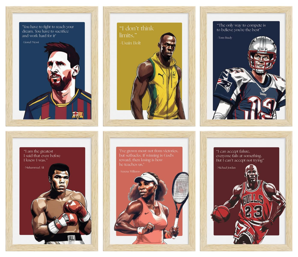 KRAYOG Sports Motivational Wall Frames Set of 6 | Inspirational Quotes Wall Art for Home, Gym & Office Décor | 10 x 13 Inch Framed Posters