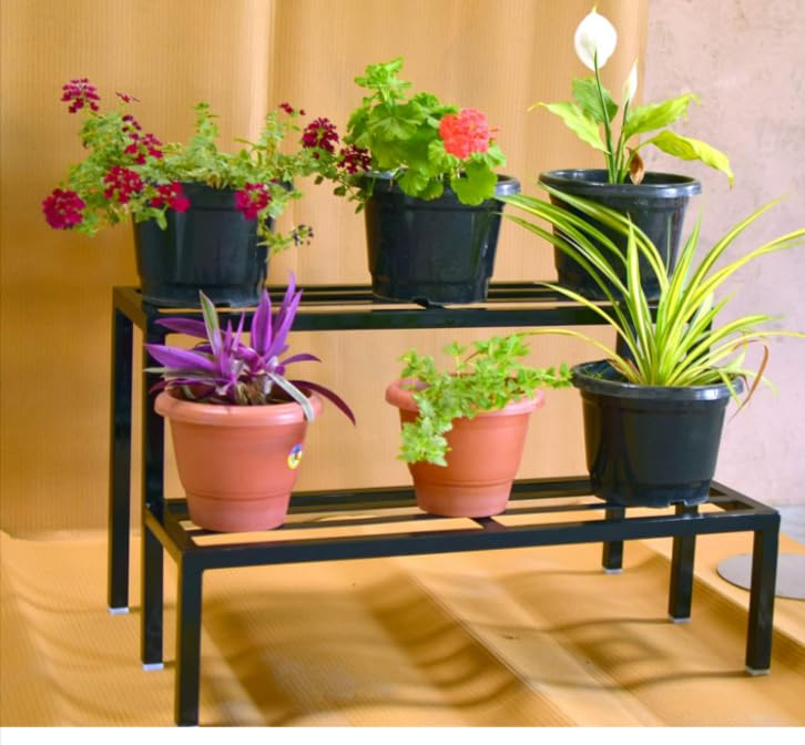 KRAYOG 2-Step Heavy-Duty Garden Plant Stand | Black Flower Pot Holder | Pack of 2 Single-Step Units