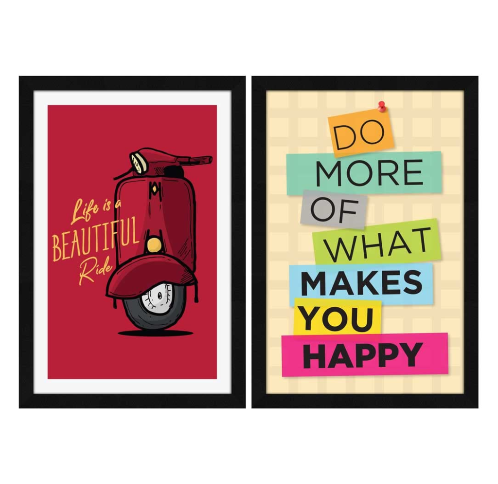 KRAYOG “Life Is a Beautiful Ride” Motivational Quote & Abstract Woman Framed Wall Art | Multicolor Inspirational Paintings | Set of 2 (12.5 x 18.5 Inches Each)