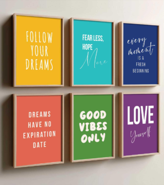 KRAYOG Engineered Wood Motivational Wall Frames – Inspirational Photo Frames for Wall Décor – Multi-Colored Quote Posters for Room & Living Room – Set of 4 (11×11 Inches)