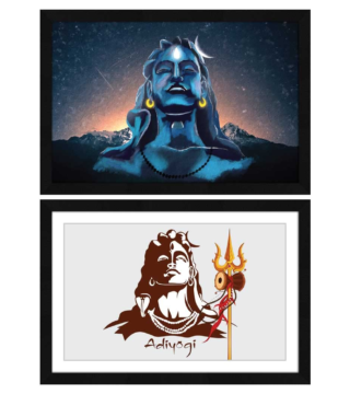 KRAYOG Adiyogi Mahakaal Framed Wall Art Paintings | Multicolor Spiritual Décor | Set of 2 Frames (12.5 x 18.5 Inches Each)
