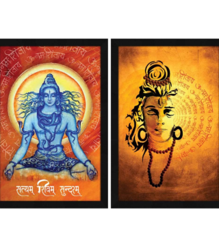 KRAYOG Powerful “Om Namah Shivaya” Shiv Mantra Framed Wall Art | Multicolor Religious Paintings | Set of 2 (12 x 18.05 Inches Each)