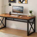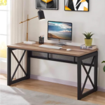 KRAYOG Brown Wood & Metal Computer Desk for Home or Office – 120×60×94 cm, DIY, with Lower Shelf & Monitor Riser