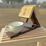 Wooden Book Rest with Cup & Mobile/iPad Holder | Triangle Book Stand & Mug Stand | Portable and Polished Wooden Page Rest