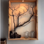 Edged Wood Shadow Box with Tree Branch Art and LED Backlight