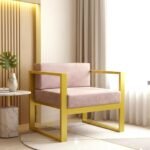 Krayog Metal Single Seater Sofa with Cushion for Living Room | Heavy Duty Iron Frame with Powder Coating | Comfortable Seating for Home & Office (Golden)