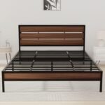 Krayog Elvo Queen Size Bed Frame | Sturdy Steel Structure with Wooden Headboard | Noise-Free | No Assembly Required | Modern Minimalist Design