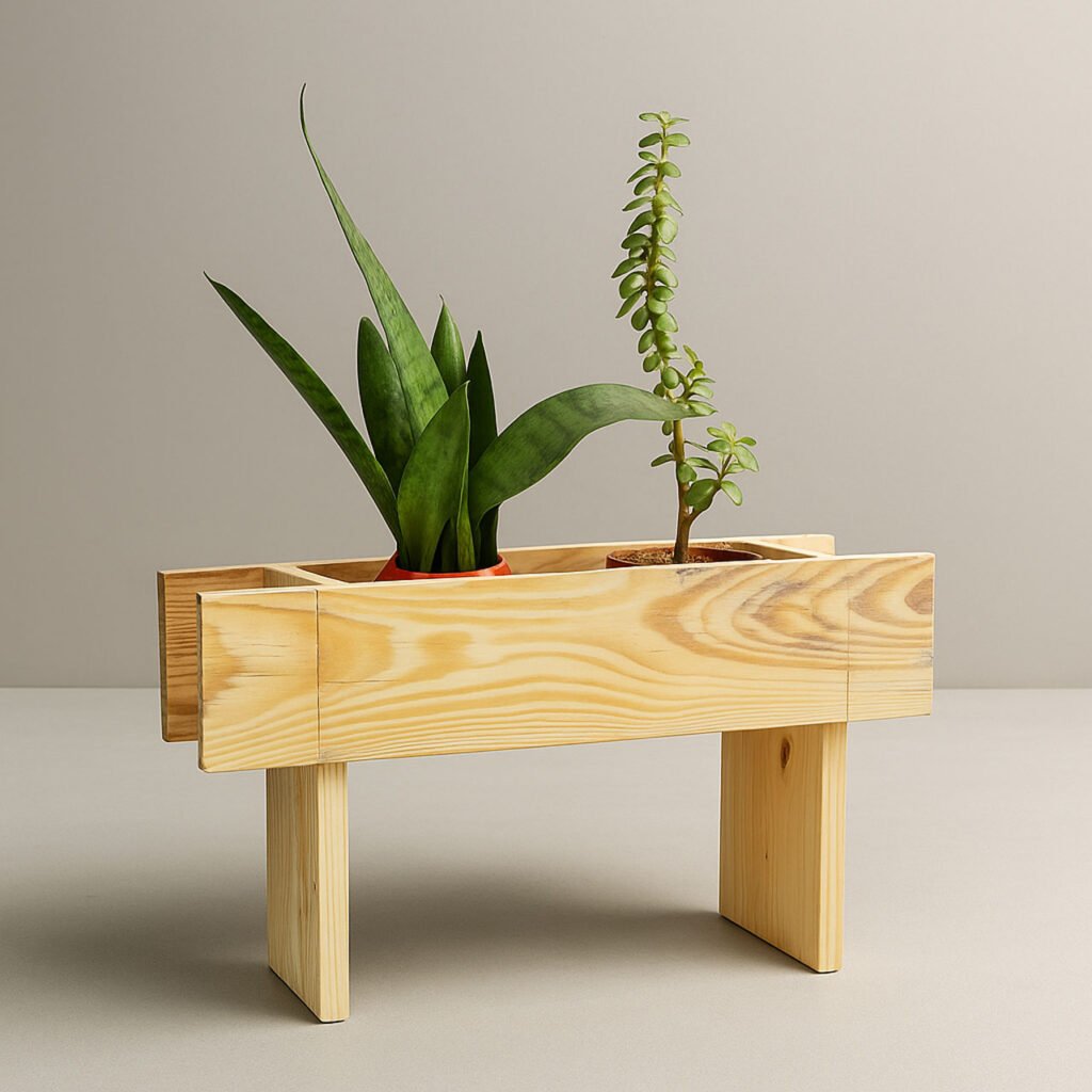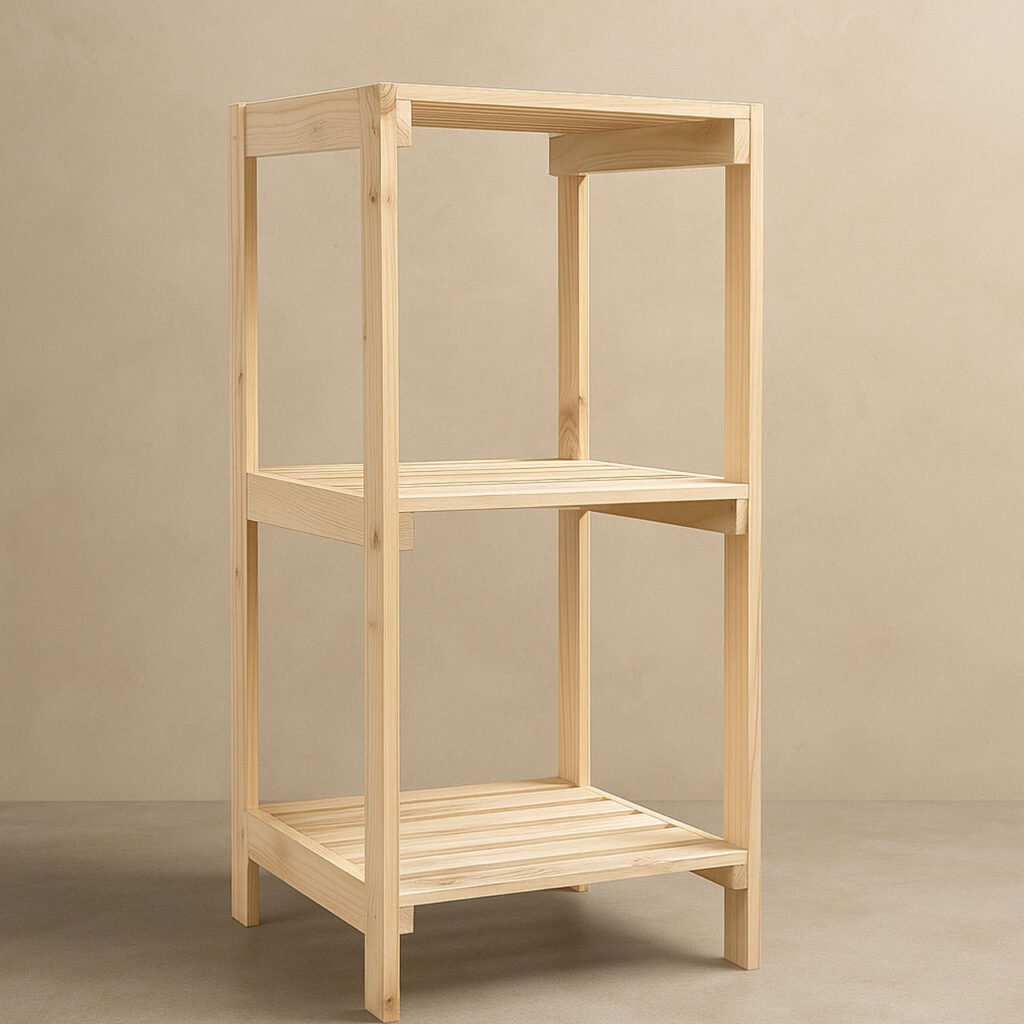 3-Tier Wooden Storage Shelf – Solid Pine Square Rack for Plants, Books & More