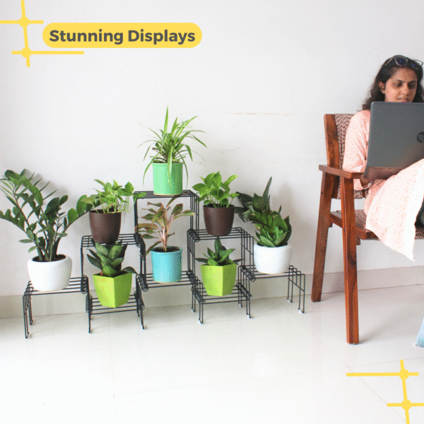 DURABLE- LONG RUST FREE LIFE : Durability is at the core of Moso’s design. The highly rust-resistant GI wire mesh meticulously machine-welded and powder-coated in a controlled environment ensures a long and rust-free life. This makes Moso Plus suitable as a durable plant stand for your balcony allowing it to withstand the elements be it rain or shine without compromising its beauty. Let this rust proof pot stand be your constant companion whether gracing your balcony verandah living room window ledge or entrance foyer.