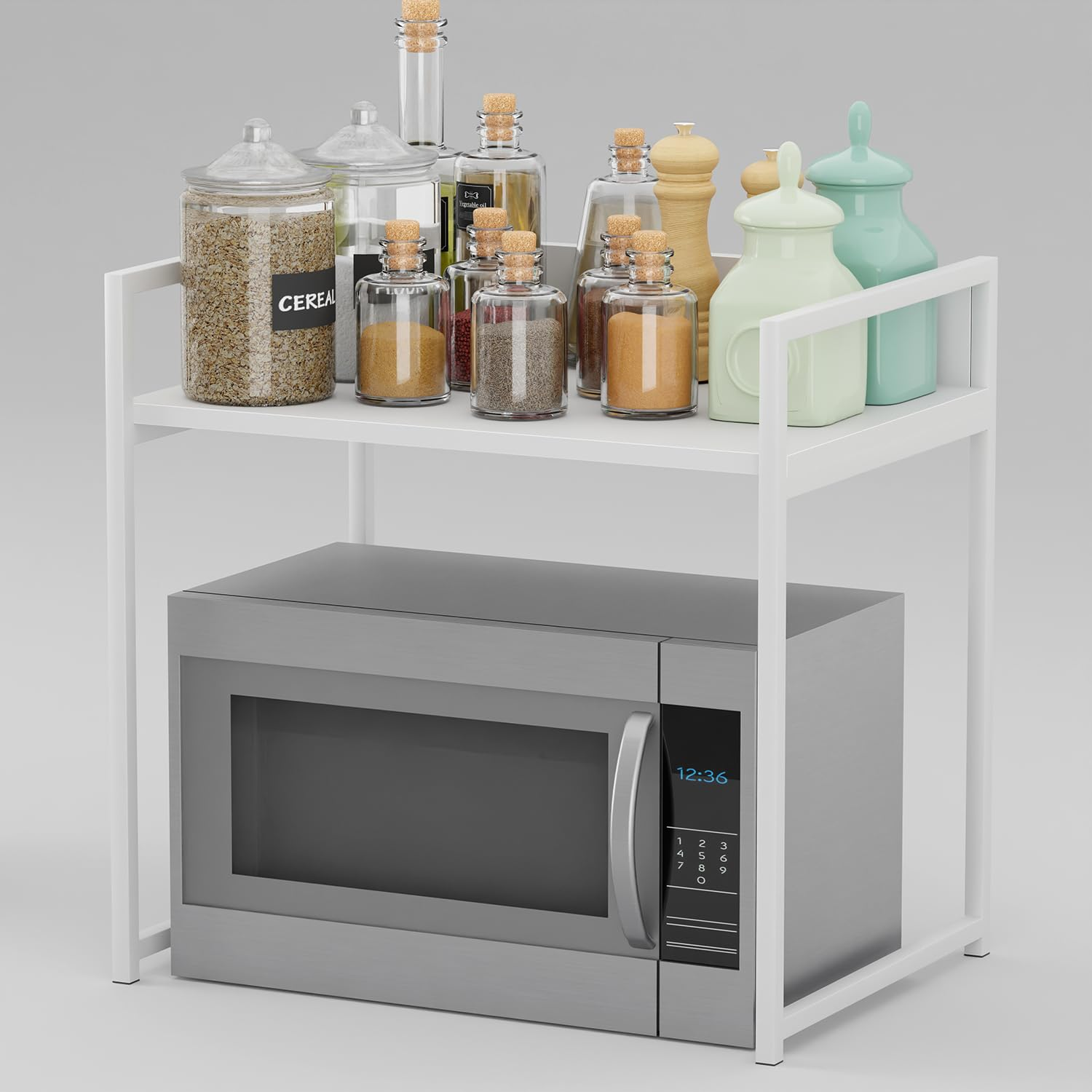KRAYOG 1 Tier Multipurpose Storage Rack – Heavy Duty Metal & Wood Kitchen Organizer | Space-Saving Microwave Oven Stand for Modular Kitchen, Living Room, Bedroom & Office (MKR-001, White & White)