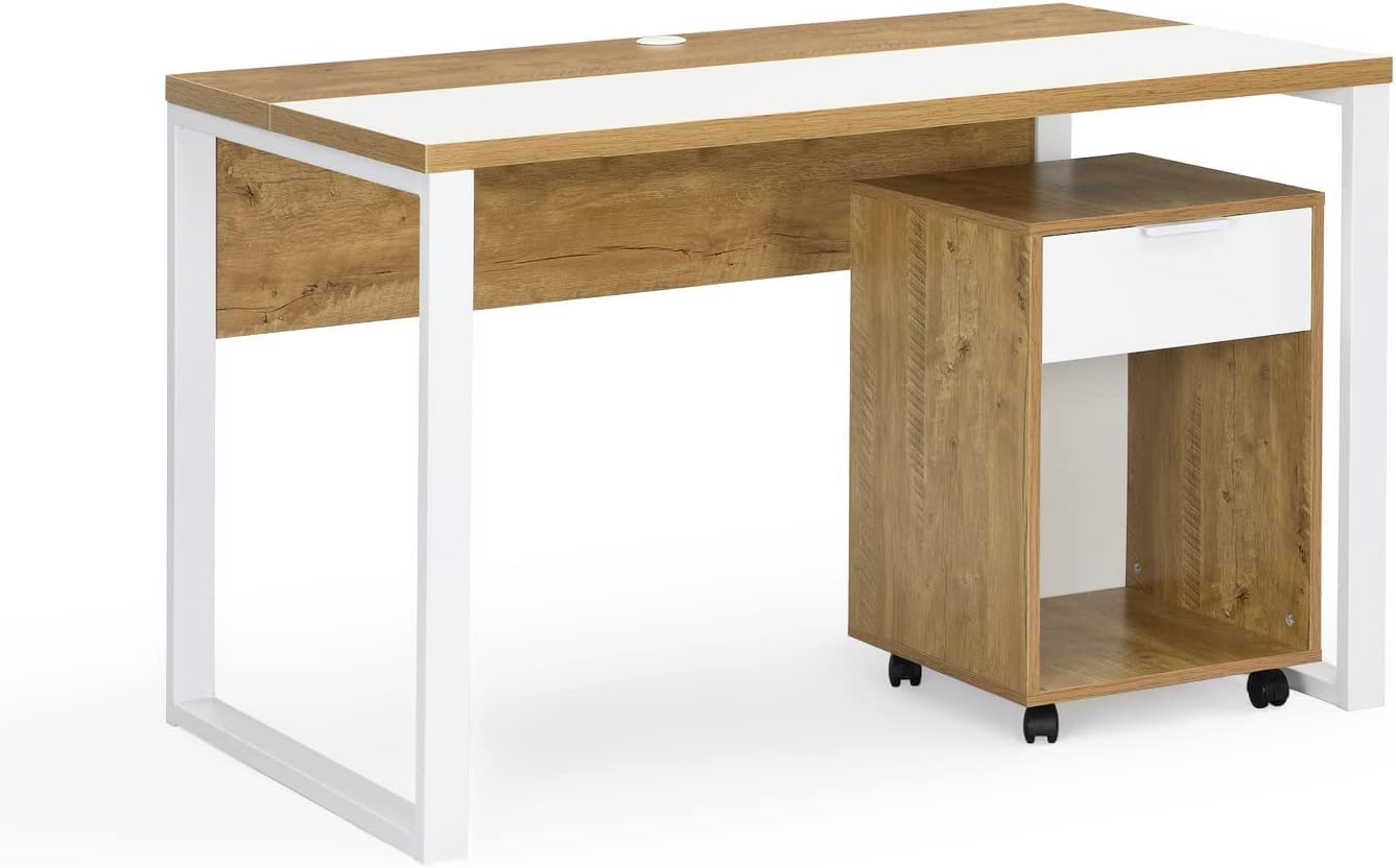 120 x 60 cm modern computer desk with a movable storage cabinet and built-in drawer. Ideal for teen bedrooms, study areas, or home offices, it provides ample storage and workspace. Easy DIY assembly for a functional and stylish setup.