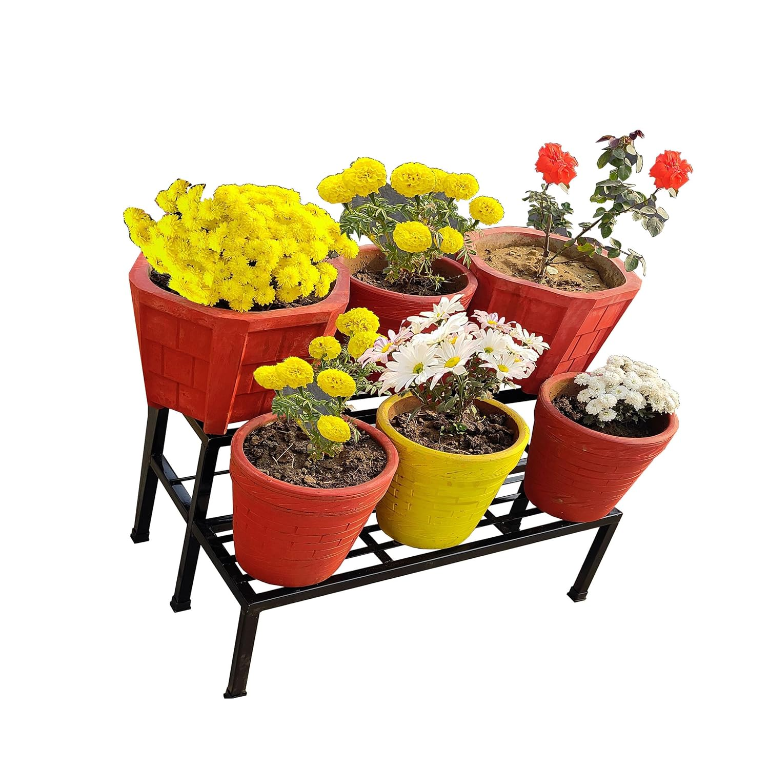 KRAYOG 2-Step Heavy-Duty Garden Plant Stand | Black Flower Pot Holder | Sturdy Plant Pot Stand