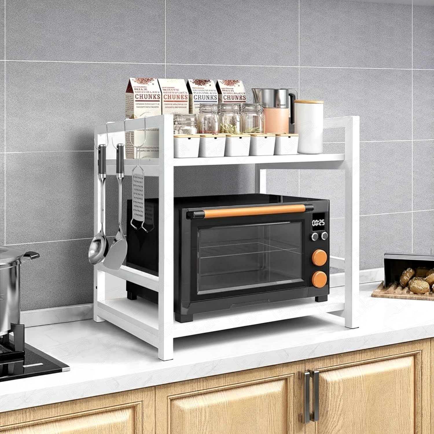 Built with a strong metal frame and durable wooden shelves in an elegant all-white finish, this 2-tier multipurpose storage rack offers sturdy support and a clean modern look. Ideal as a microwave oven stand or versatile organizer, it helps save space while keeping your kitchen, living room, bedroom, or office neatly organized.