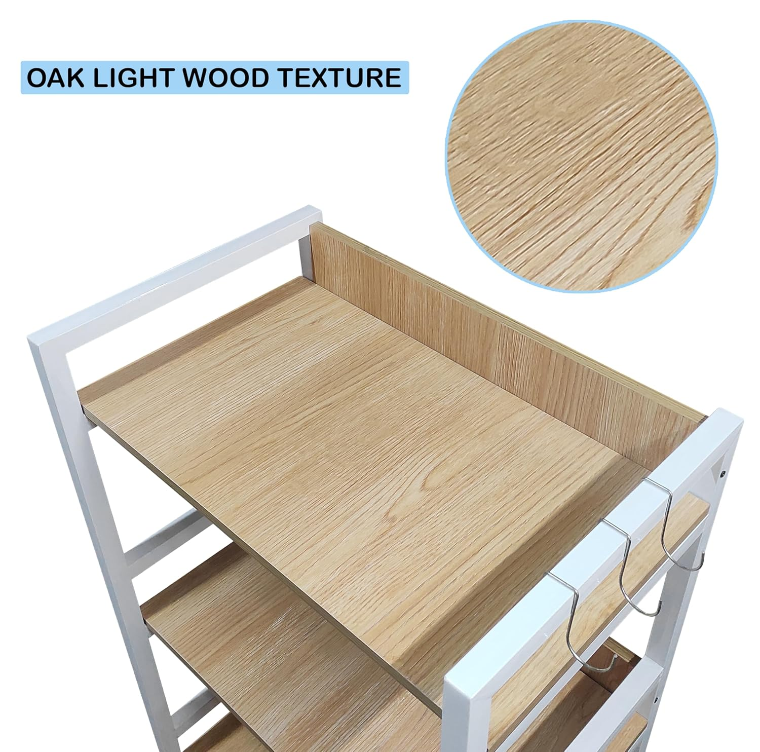 KRAYOG 3 Tier Multipurpose Storage Rack – Heavy-Duty Metal & Wood Kitchen Organizer | Space-Saving Microwave Oven Stand for Modular Kitchen, Living Room, Bedroom & Office (MKR-003, White & Light Oak)