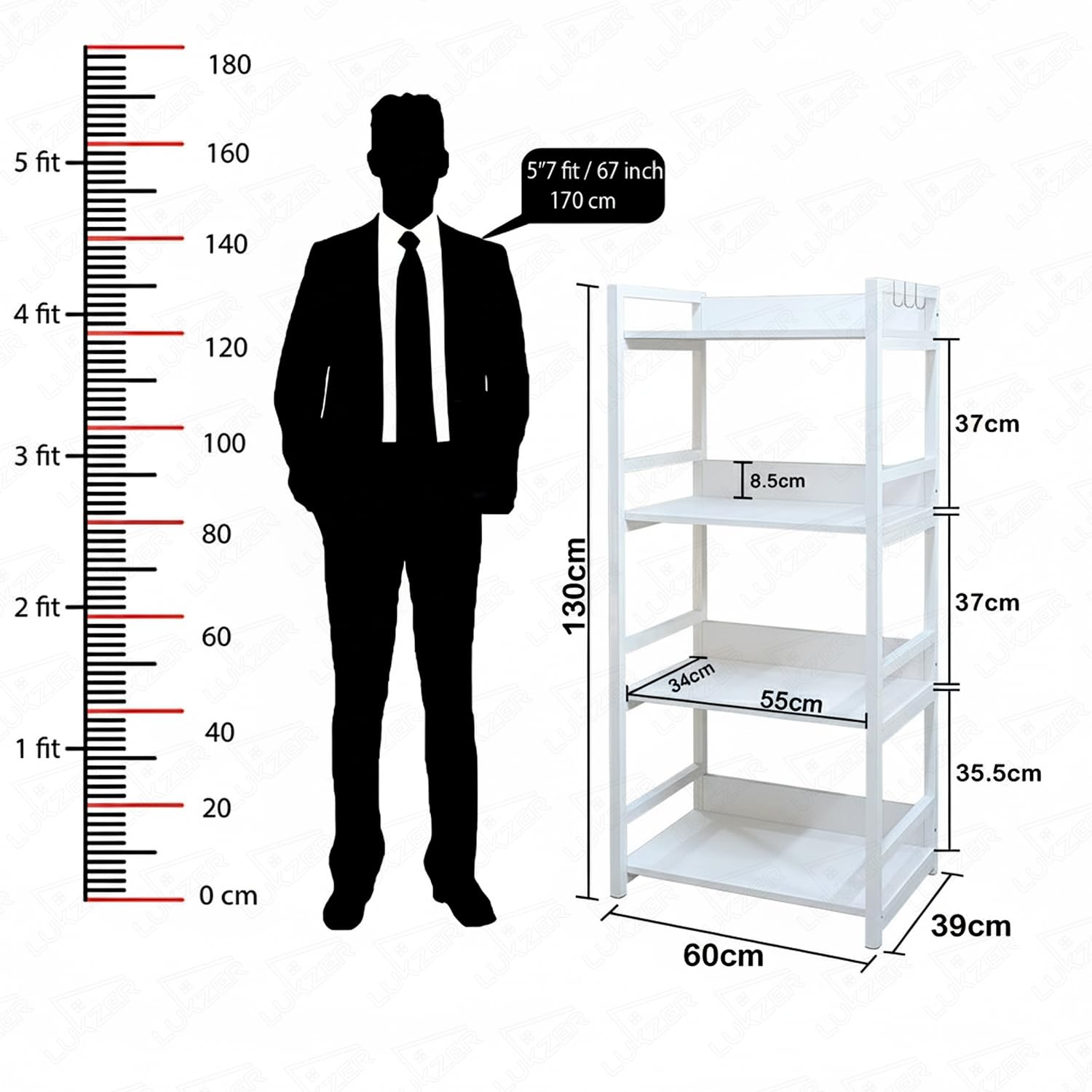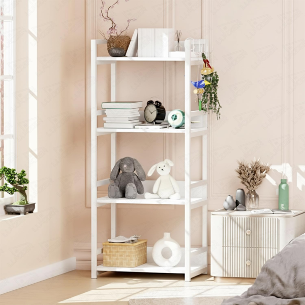 - Four Spacious Shelves for Smart Storage: Designed for large storage needs, this 4-tier stand helps you organize books, kitchen appliances, toiletries, or décor items while keeping everything visible and accessible.