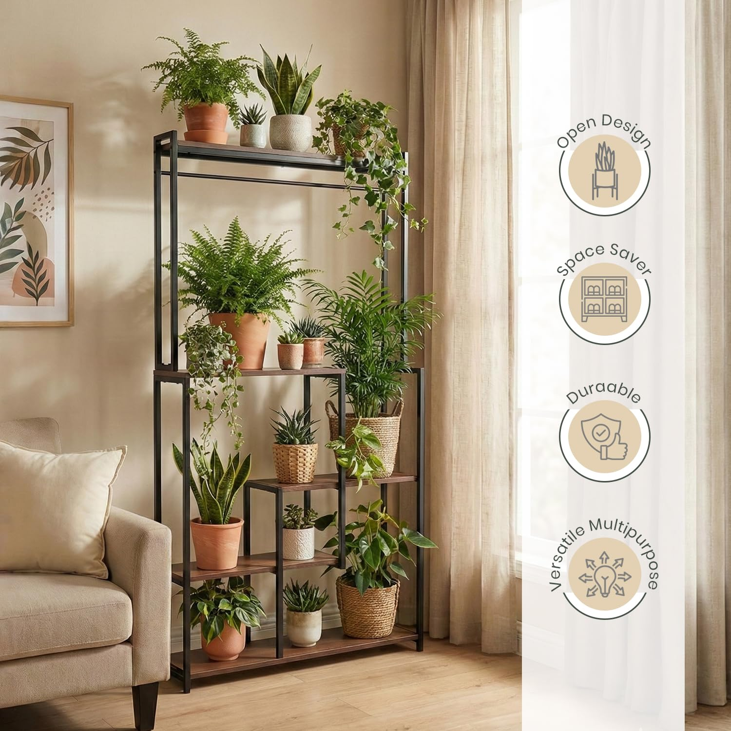 - MULTI-AREA USAGE: Suitable for use in homes, living rooms, balconies, patios, and garden spaces. Designed to hold plants and flowers while enhancing organization and display.