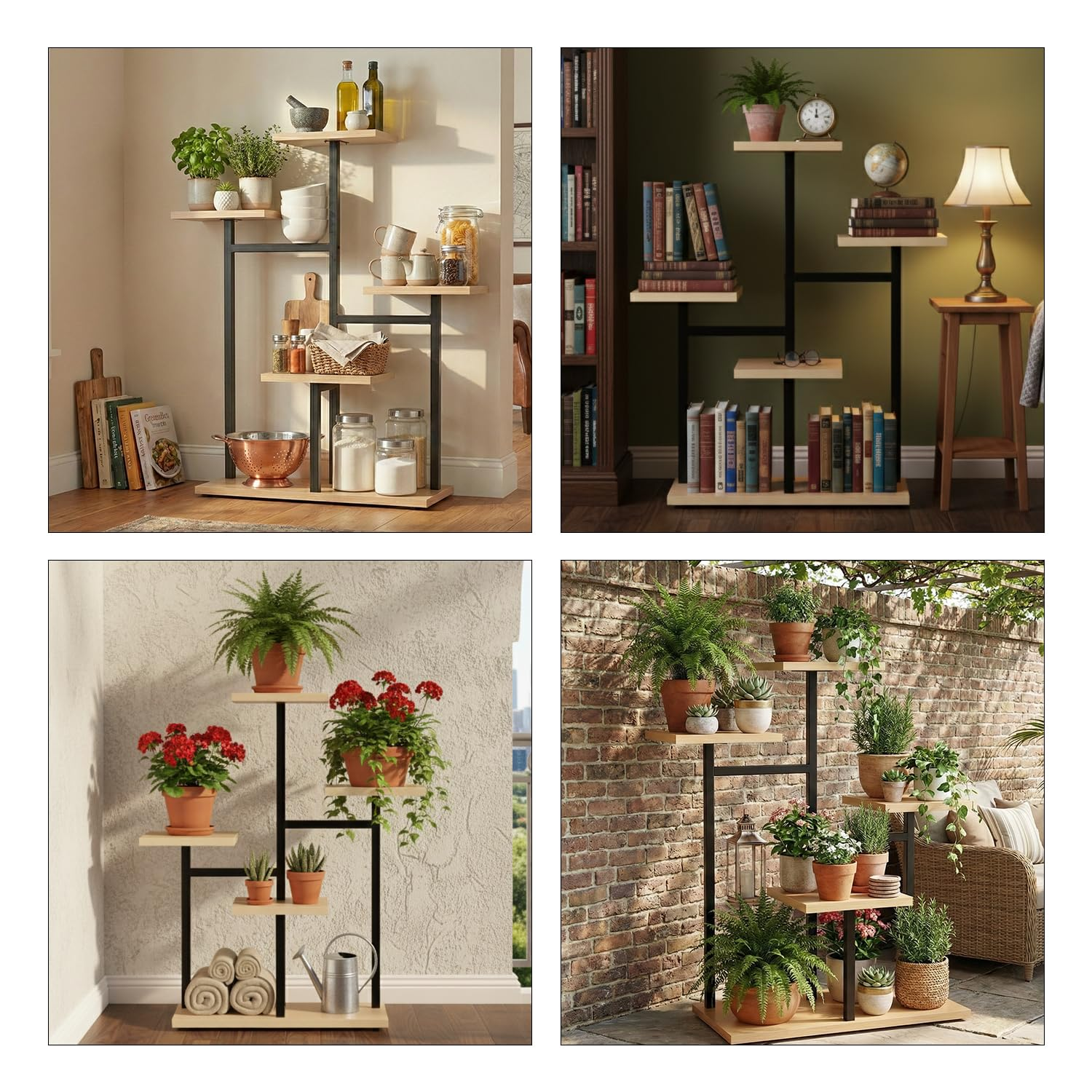 - FOUR-TIER DISPLAY DESIGN: The multi-level arrangement allows placing several pots vertically, helping maximize corner areas in rooms, balconies, or garden spots while keeping the overall display structured and tidy.