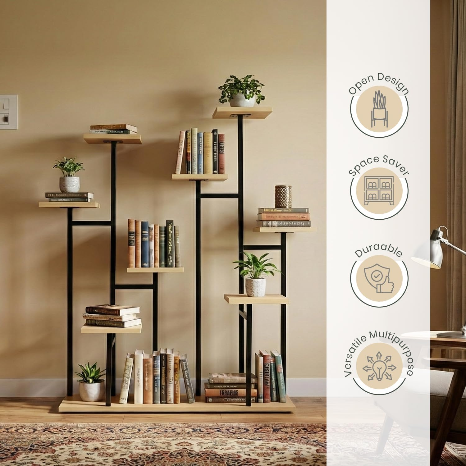 • OPEN AND EASY LAYOUT: The open arrangement supports airflow around pots and keeps displays tidy. Its structure fits neatly into corners, making placement simple for enhancing indoor or balcony plant arrangements.