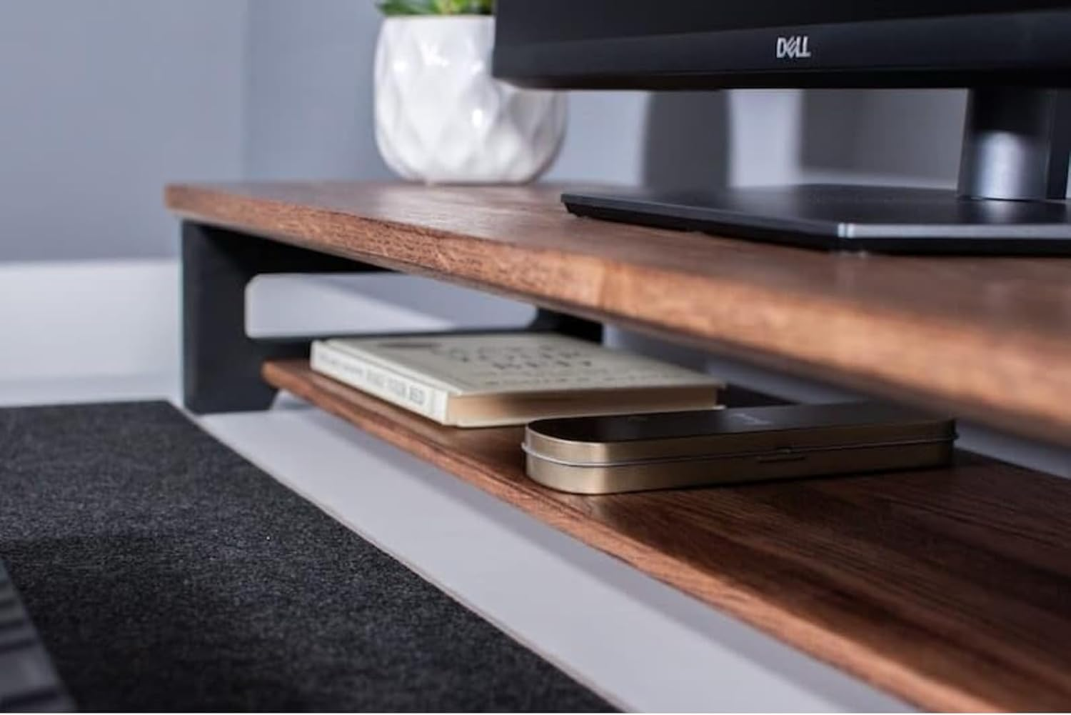 Upgrade your desk setup with this 80cm wooden monitor stand designed for better ergonomics and organization. The sturdy black legs provide strong support, while the spacious storage area underneath keeps your keyboard, accessories, and essentials neatly arranged. Ideal for office, home, studio, or study table use, it helps reduce neck strain and creates a clean, clutter-free workspace.