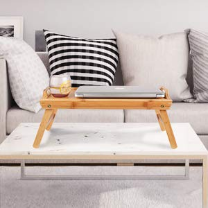 KRAYOG Bamboo Wooden Foldable Bed Tray Table for Breakfast & Serving – Multipurpose Study & Laptop Table with Legs for Home Use, Beige, 30 x 50 cm