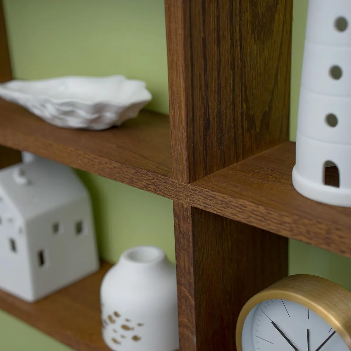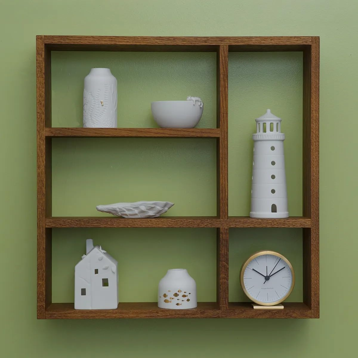 This five-compartment wooden wall-mounted shelf is perfect for both function and style. Use it to hang mugs in the kitchen or display collectible figurines and small décor items, adding organized charm to any wall.