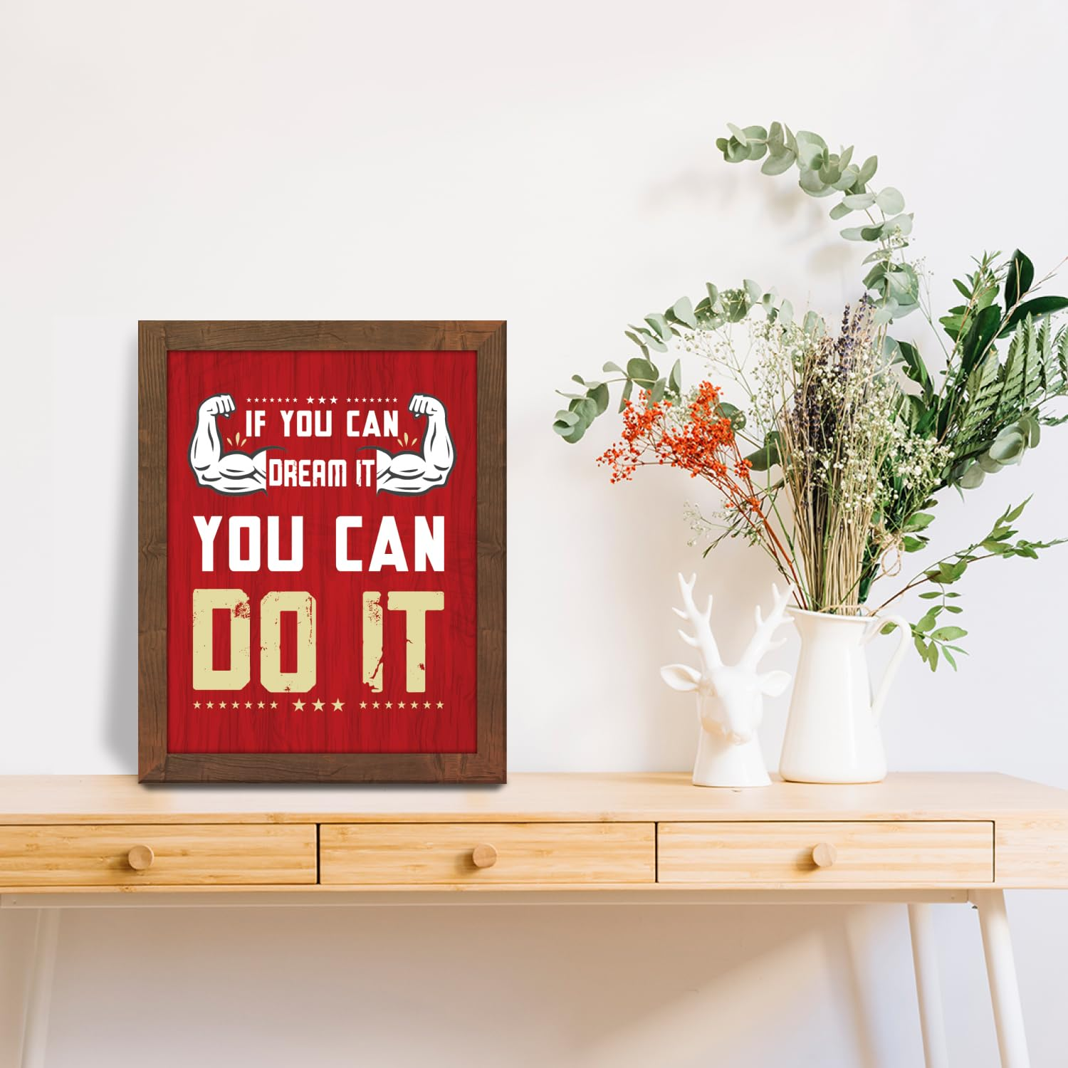 Add energy to your space with this 9 x 13.5 inch gym motivational wall frame featuring a powerful fitness quote. Designed with a sturdy brown frame and protective acrylic front, this ready-to-hang wall art is ideal for gym rooms, home interiors, or office décor.