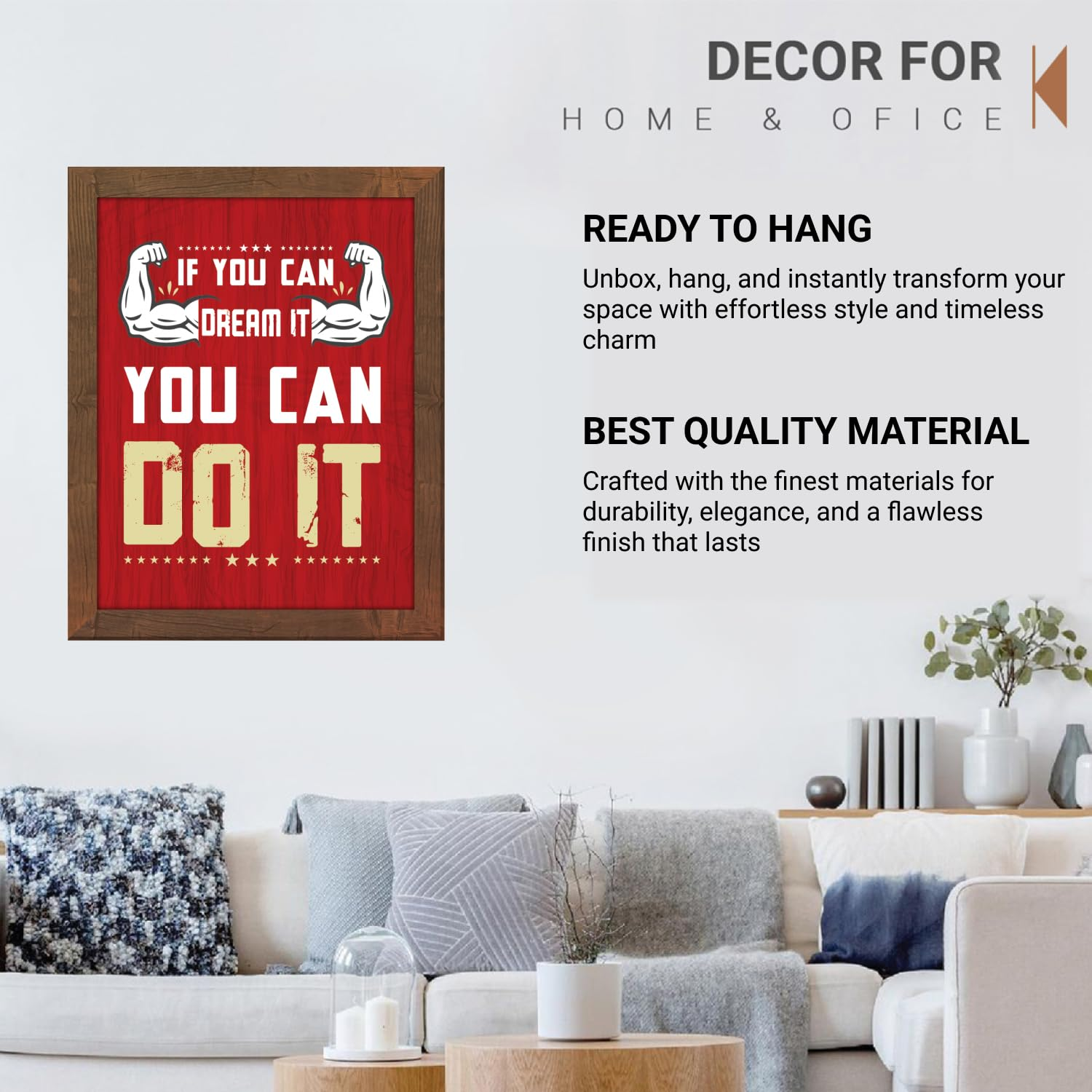 KRAYOG Gym Motivational Wall Frame 9” x 13.5” – Brown Finish | Inspirational Fitness Quote Wall Art for Gym, Home & Office Décor | Acrylic Front | Ready to Hang (Theme 16)