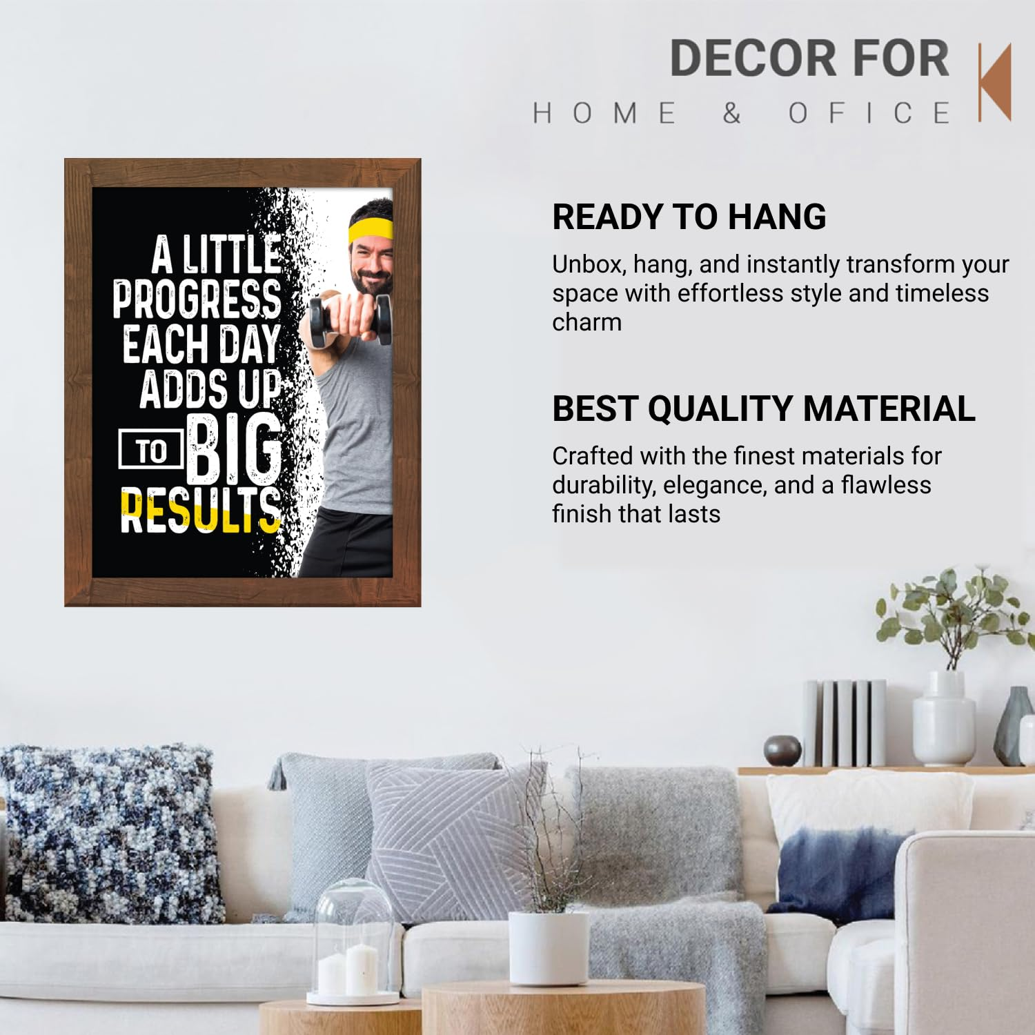 KRAYOG Gym Motivational Wall Frame – 9 x 13.5 Inch | Brown Frame with Acrylic | Fitness Quote Wall Art for Gym Room, Home & Office | Ready to Hang (Theme 15)
