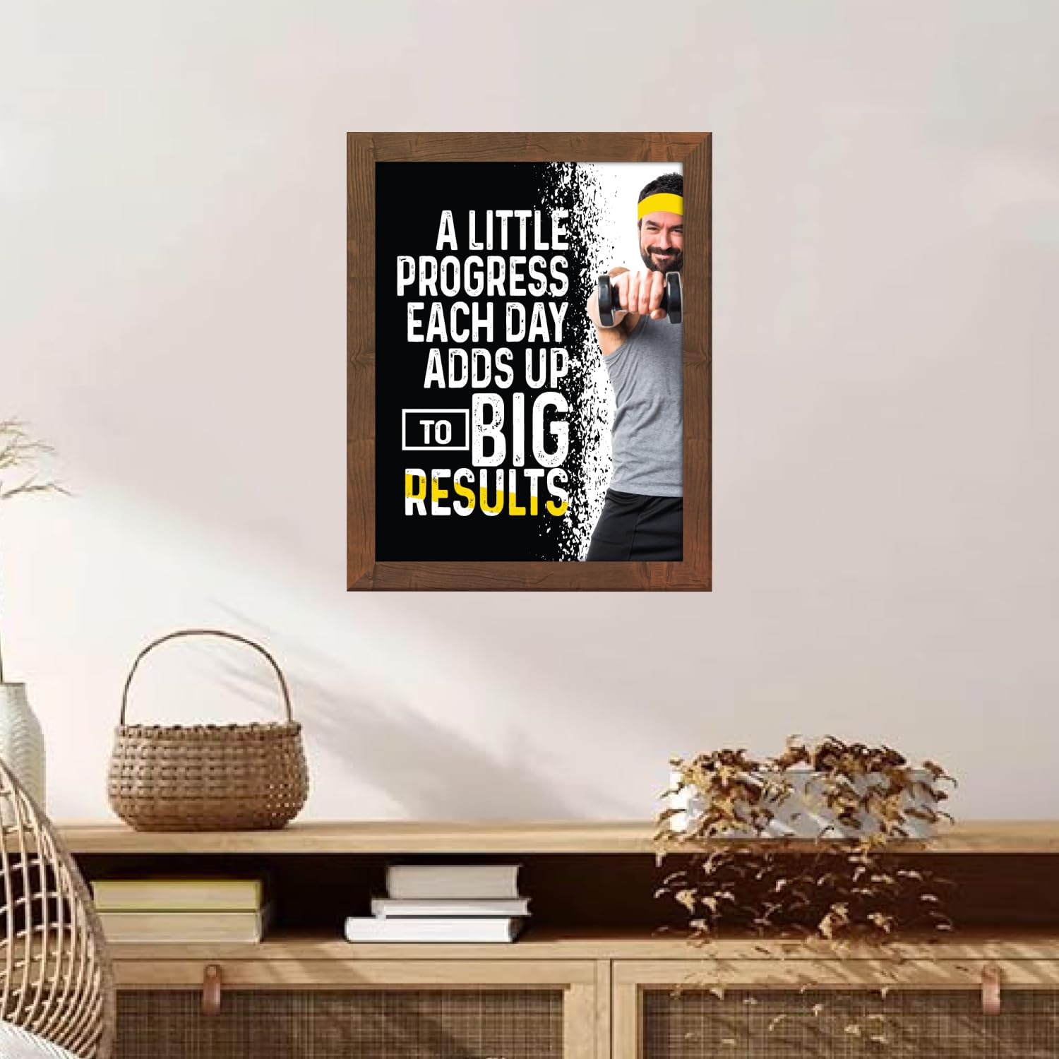 9 x 13.5 inch gym motivational wall frame featuring an inspiring fitness quote. Designed with a sturdy brown frame and acrylic cover, this ready-to-hang wall art is perfect for gym rooms, home workouts, or office spaces.