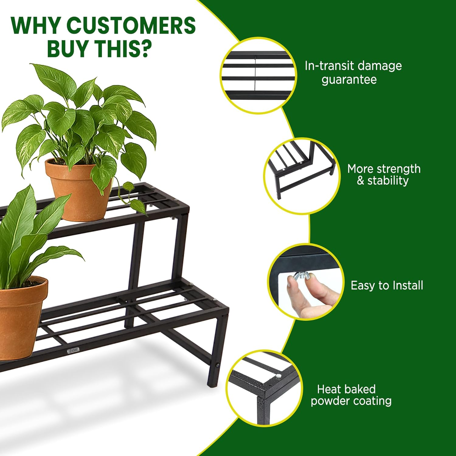 Organize your plants effortlessly with this heavy-duty 2-step planter stand. Designed for easy assembly and sturdy performance, it’s ideal for indoor décor, balconies, and garden spaces, providing stable support for multiple pots.