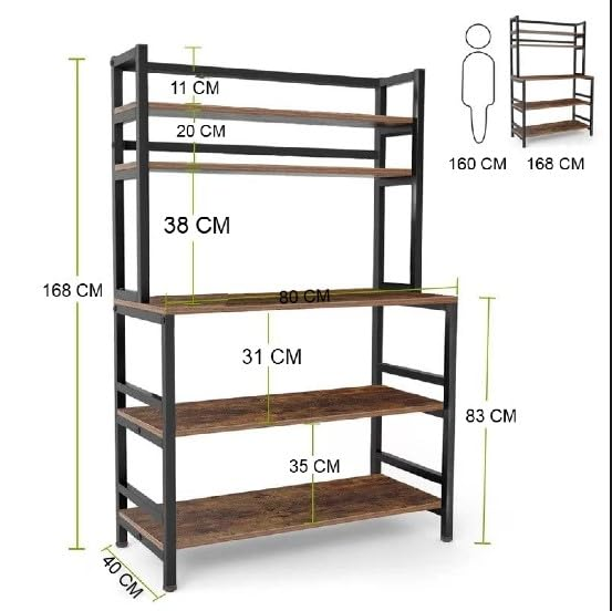 - Large capacity: 5-tier shelf can store toaster, spice, plate, dishes, etc. It is ideal for holding microwave, oven, and some of your other kitchenware or bits and pieces, as well as storing spice, plate dishes, and any other things you want.