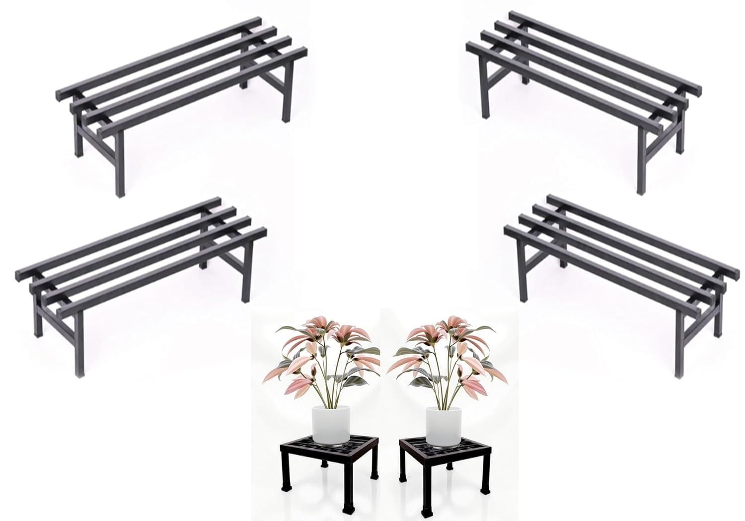 KRAYOG “Heavy-Duty One-Step Square Tube Plant Stand | Iron Pot Holder for Indoor & Outdoor, Balcony & Home Decor (Black, Set of 6)”