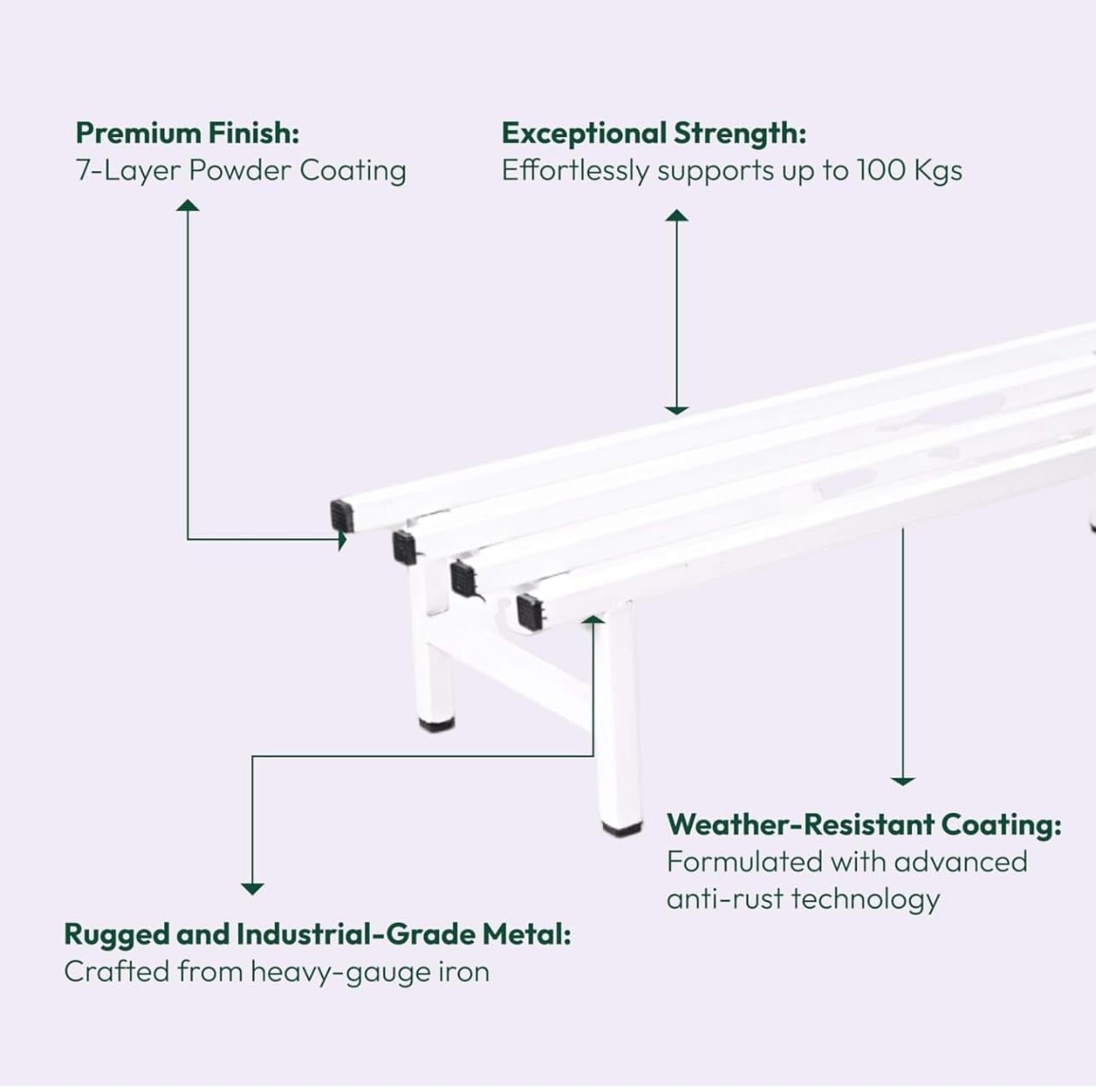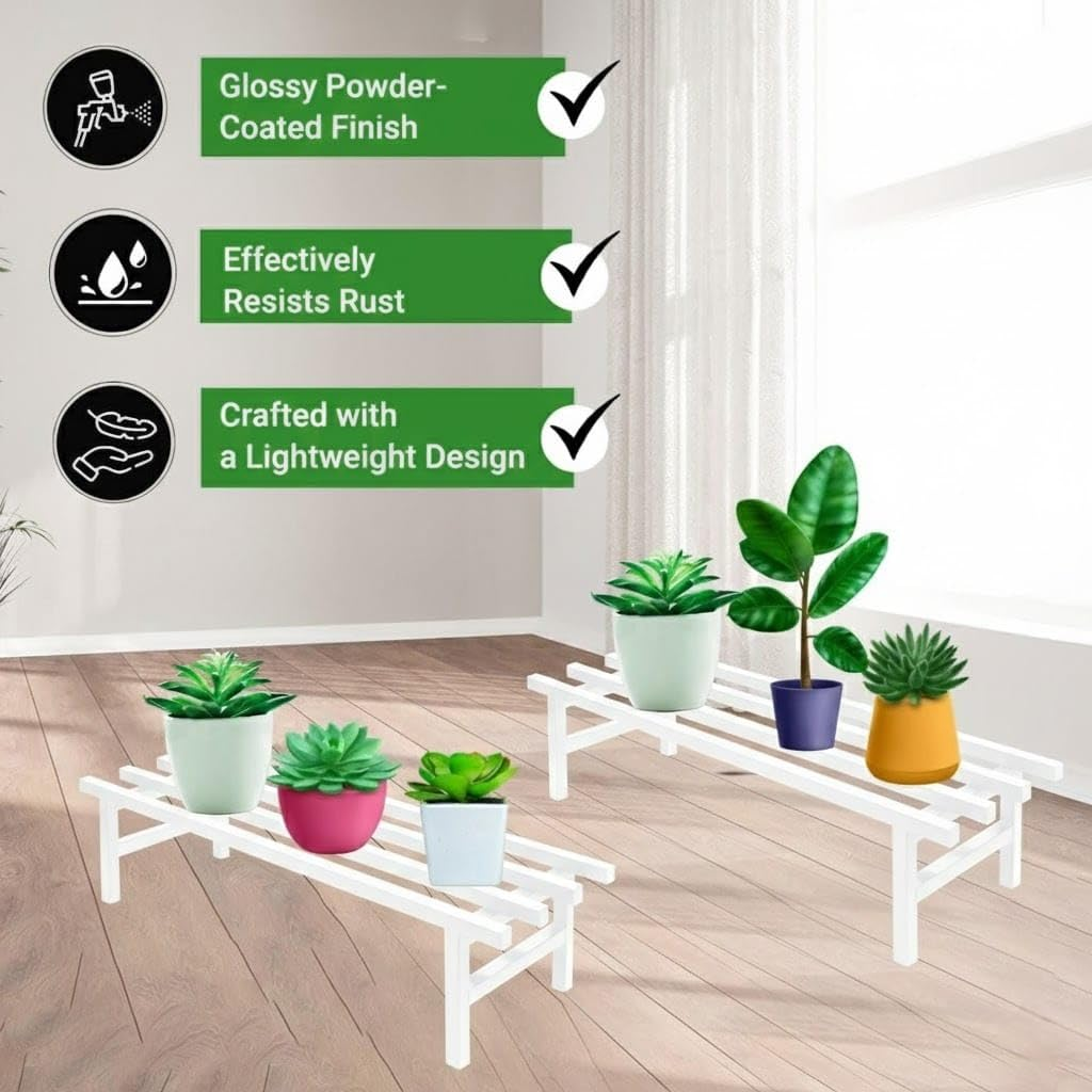 Enhance your home or garden décor with this heavy duty rectangular plant stand set (2 pieces) in elegant white. Designed for both indoor and outdoor use, it offers strong support, stability, and a modern stylish look—perfect for balconies, gardens, patios, and living spaces.