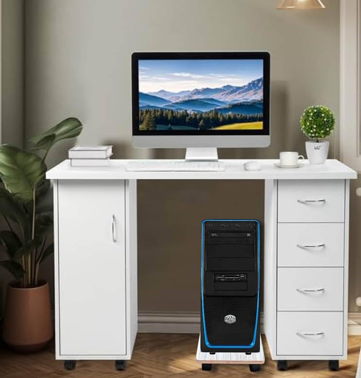 KRAYOG Heavy-Duty Wooden CPU Trolley with 4 Smooth Caster Wheels – Computer Tower Stand for Home & Office (6 x 10 Inch, White)