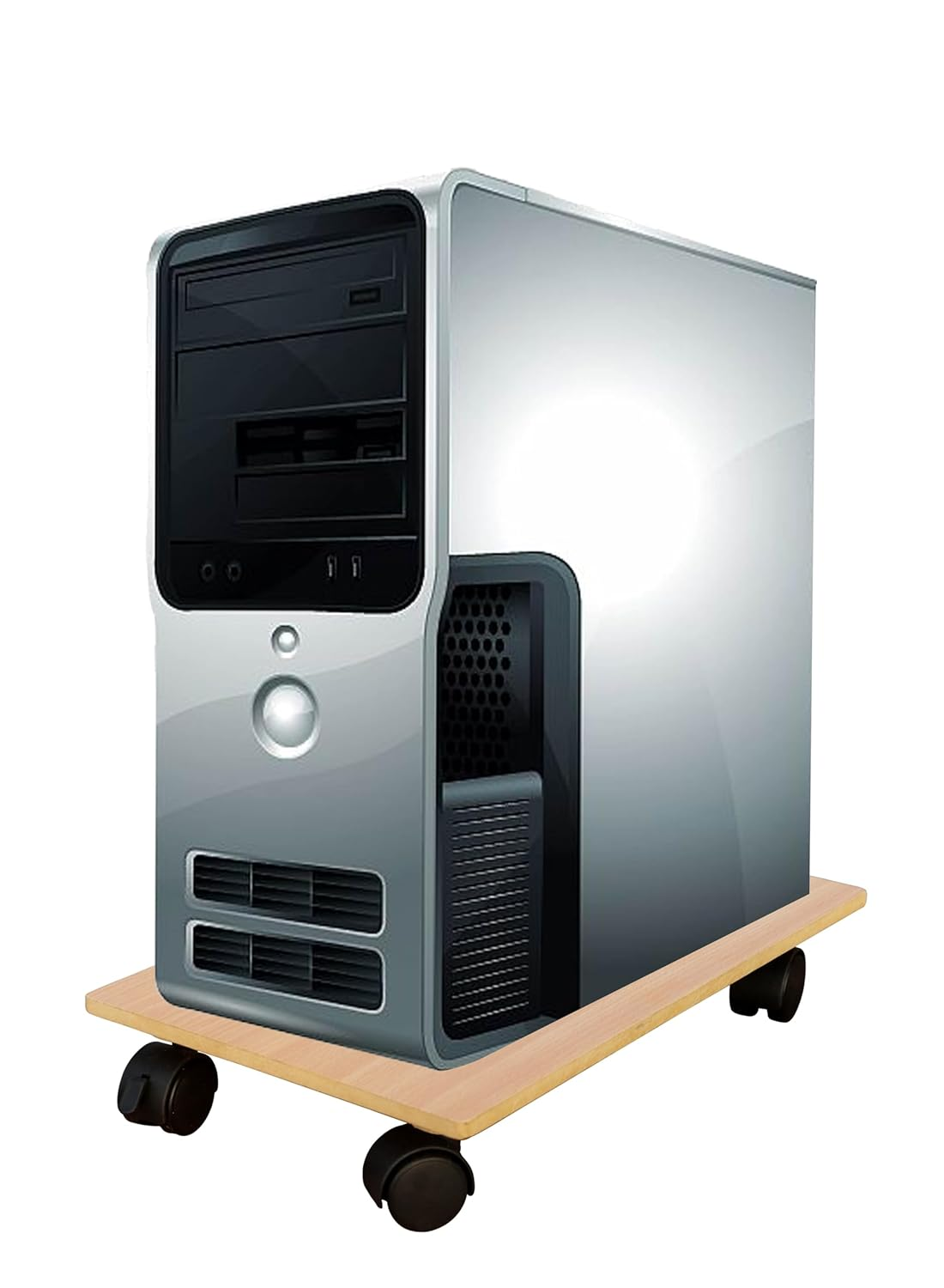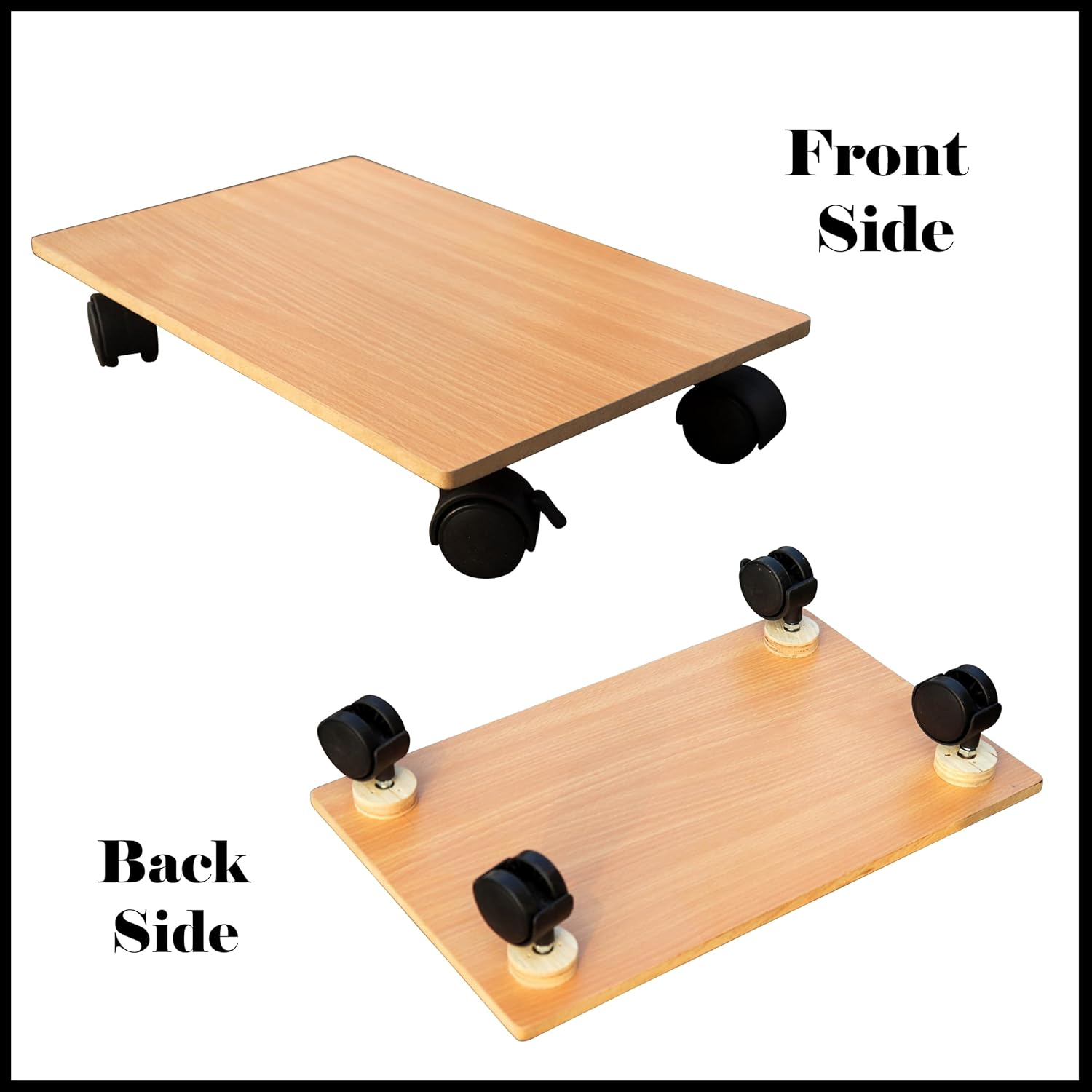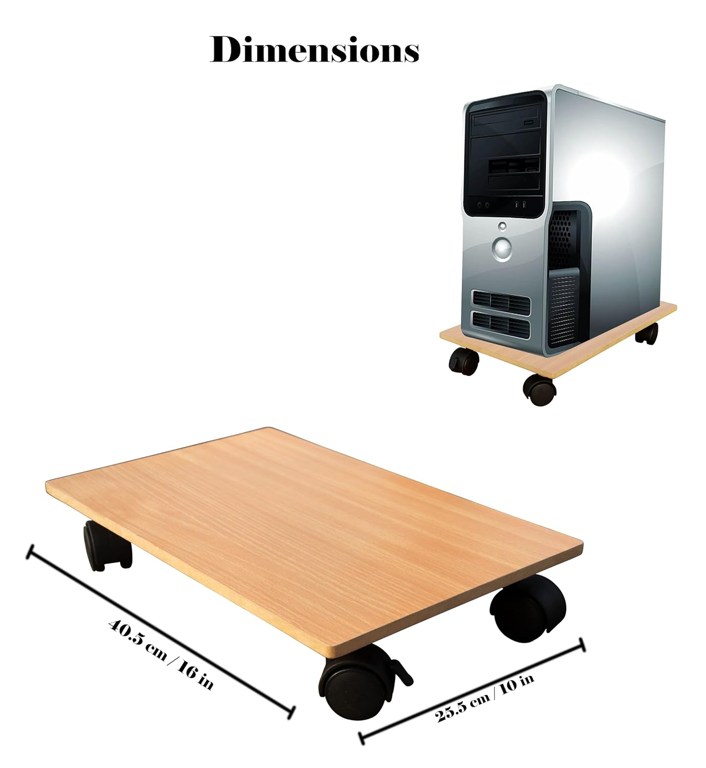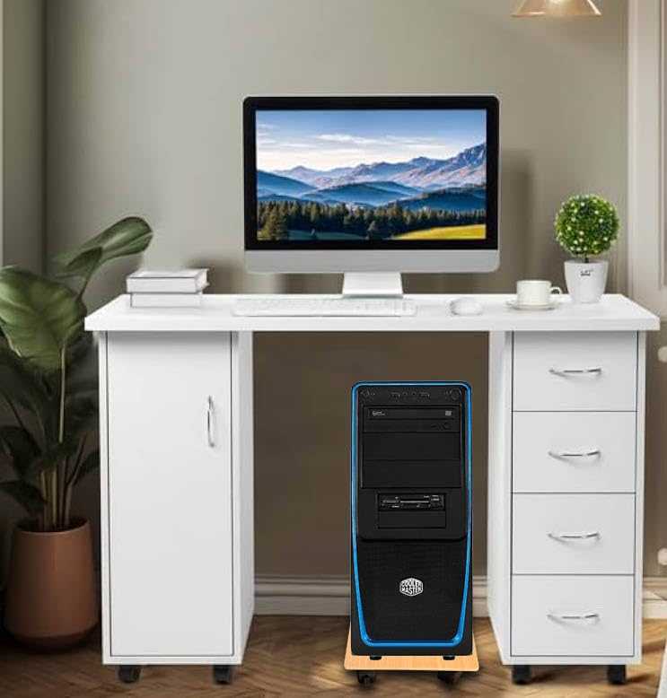 KRAYOG HOMECUTE Heavy-Duty Wooden CPU Trolley with 4 Smooth Caster Wheels – Computer Tower Stand for Home & Office (6 x 10 Inch, Beige)