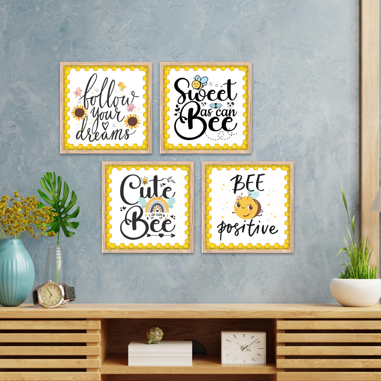 Upgrade your décor with this Set of 4 Motivational Wall Frames featuring inspiring quotes and colorful nature-themed designs. Each 8×8 inch high-quality print comes with a durable frame, making it perfect for home, office, or study room decoration. A stylish and uplifting addition to any space.