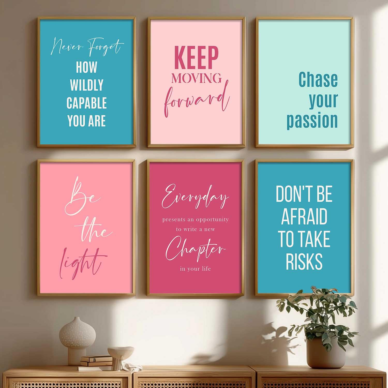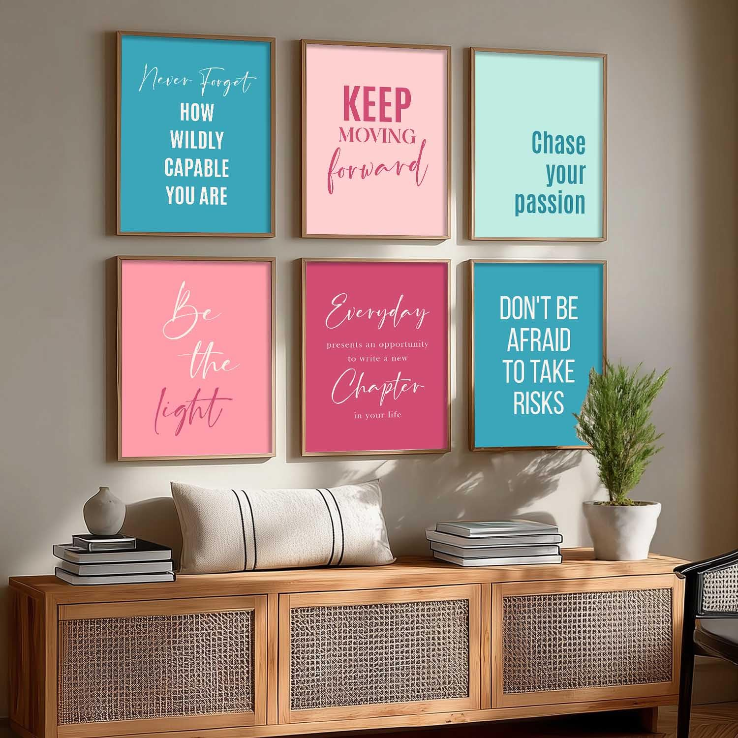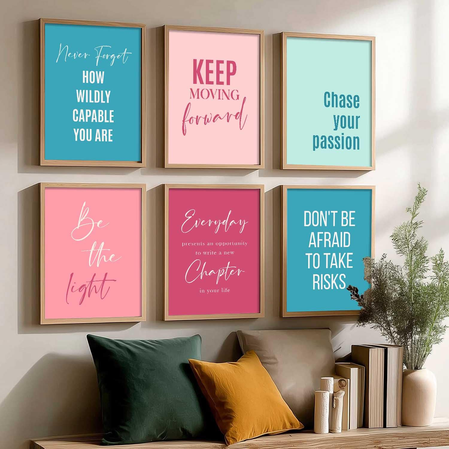 Add motivation to any room with this set of 6 inspirational quotes frames (10×13 inches, Art 9). Ideal for bedrooms, living rooms, or office walls, these framed posters bring style and positivity to your décor.