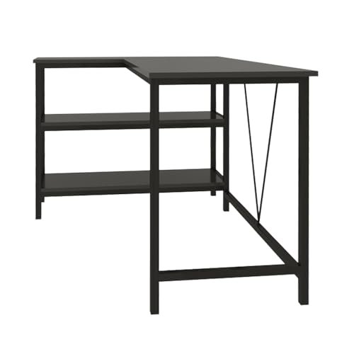 KRAYOG L-Shaped Study & Computer Table – Wooden Corner Desk for Home Office & Gaming, Full Black Finish