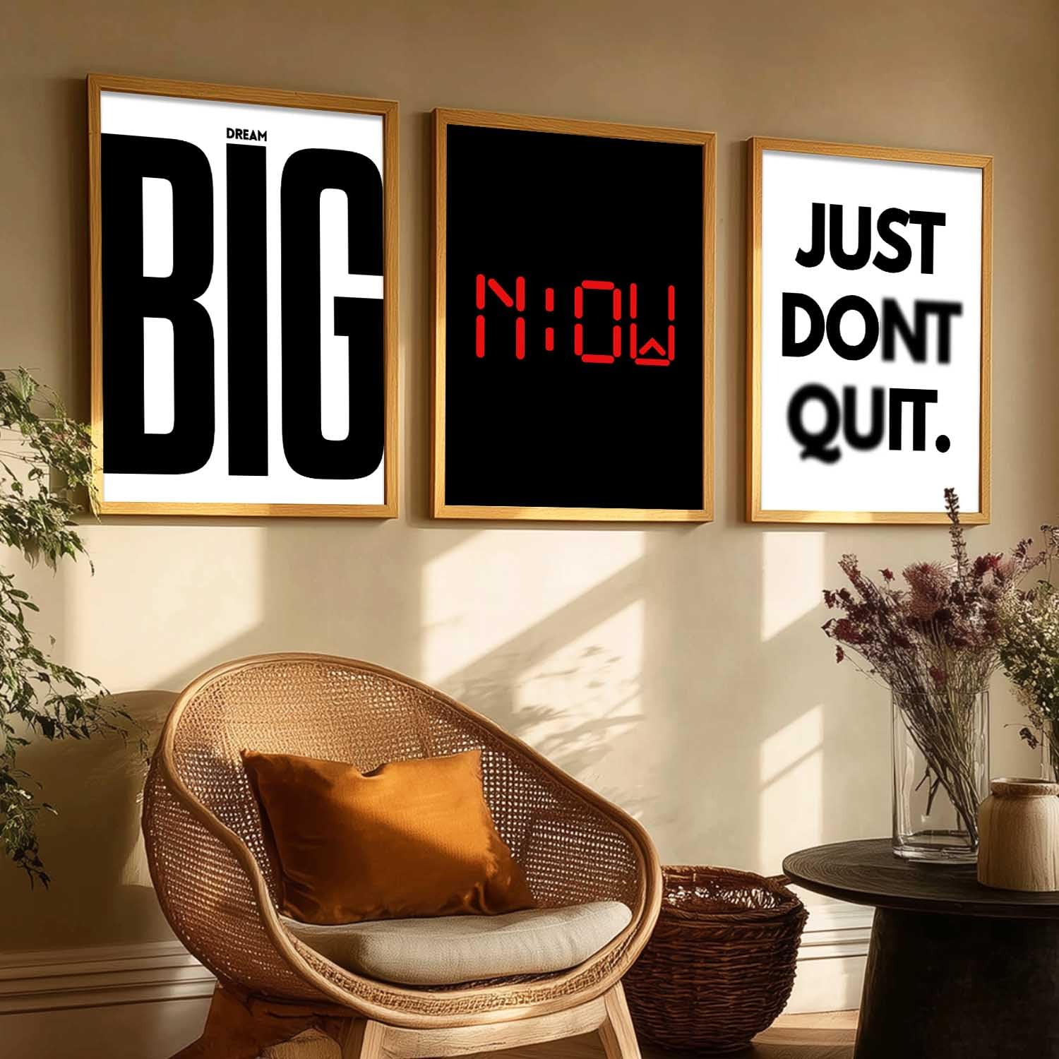 Transform your space with this set of 3 large framed motivational quote posters (13 x 17 inch each). Featuring bold, modern typography with high-quality 300 DPI prints and durable 3/4 inch frames, these aesthetic wall art pieces are perfect for inspiring positivity in your office, living room, or study room.