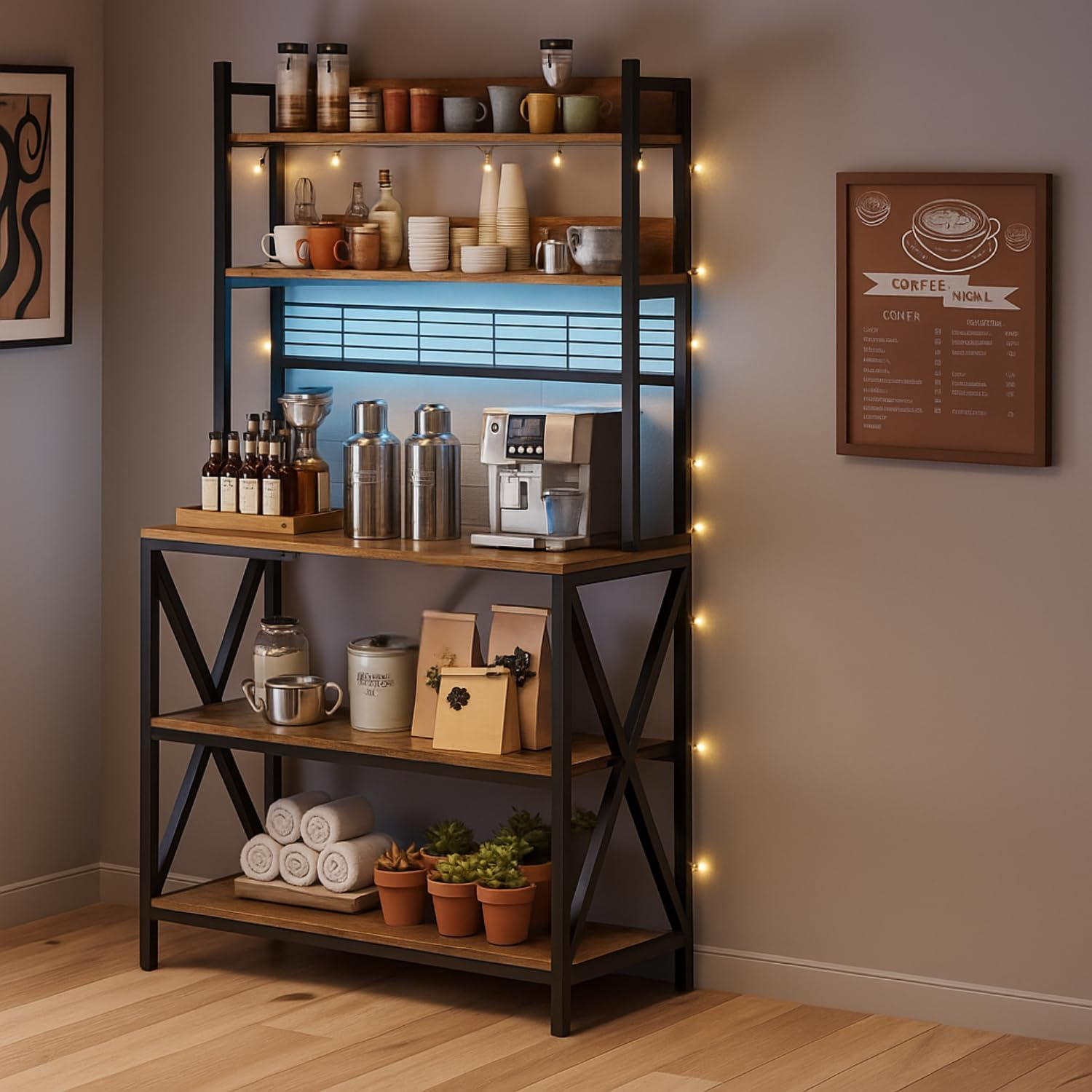 KRAYOG Lita Heavy Duty Microwave Oven Stand | 5-Tier Multi-Layer Kitchen Storage Rack | 60 x 40 x 170 cm | Black & Rustic Brown Finish | DIY Assembly
