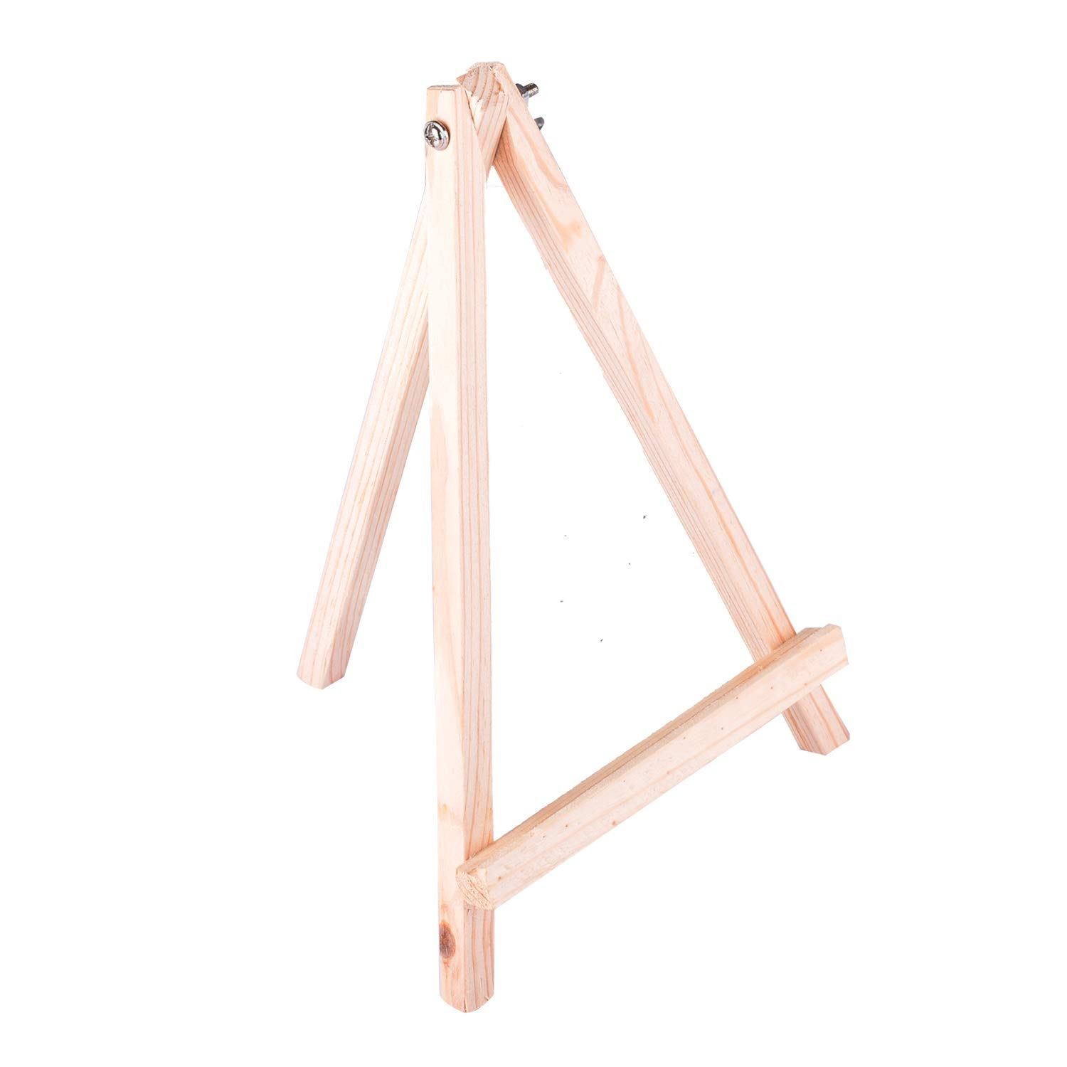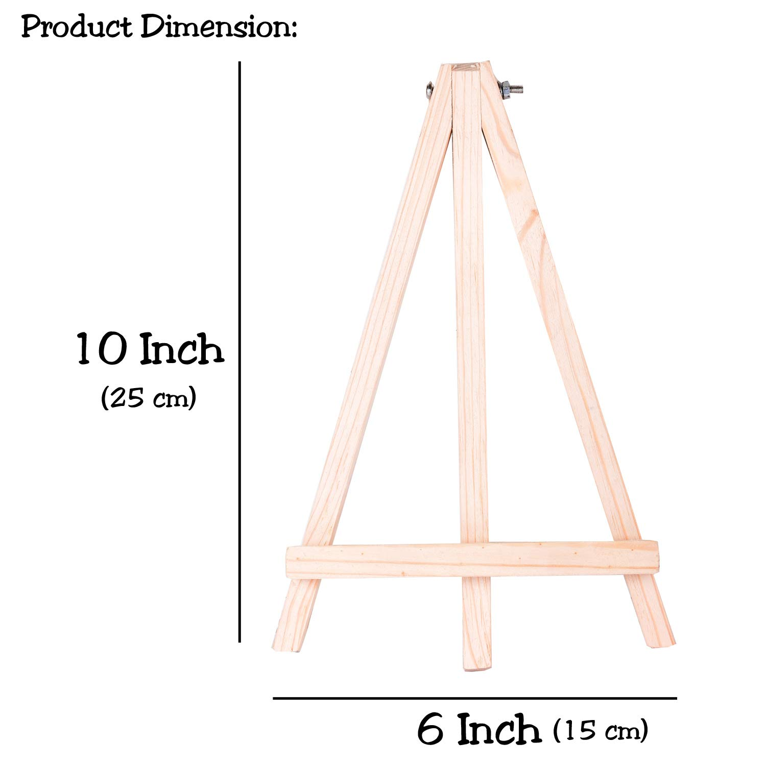 Upgrade your display setup with this set of 3 medium 10-inch wooden tabletop easel stands, designed in a classic A-frame style for stability and elegance. Crafted from high-quality natural wood, these easels offer a smooth finish and sturdy support, making them perfect for showcasing mini canvases, artwork, photos, menu cards, table numbers, and signage.