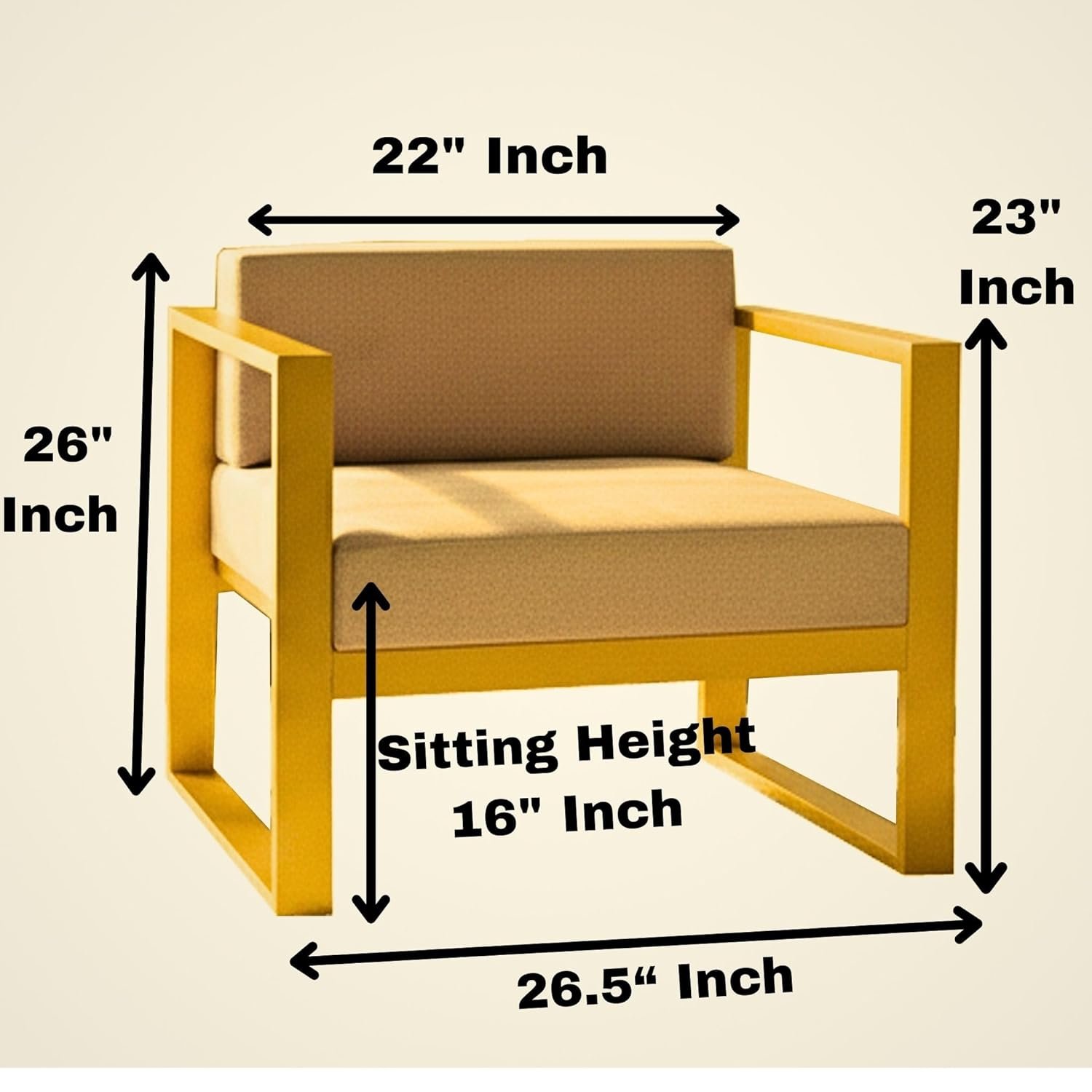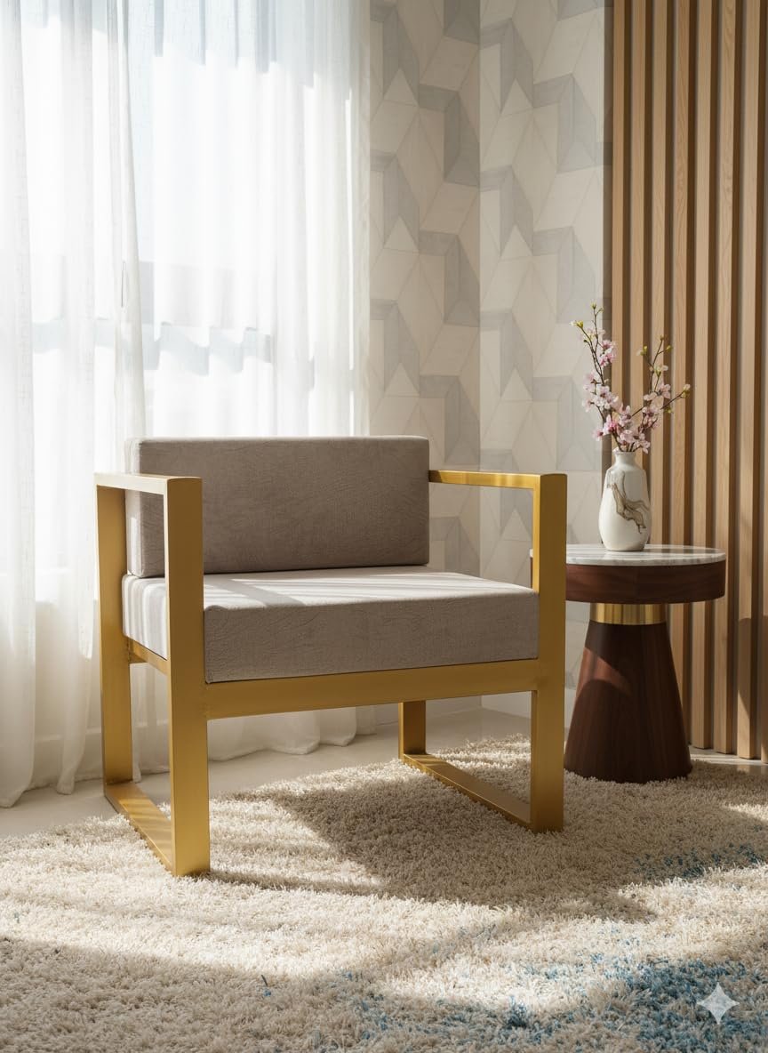 Krayog Metal Single Seater Sofa with Cushion for Living Room | Heavy Duty Iron Frame with Powder Coating | Comfortable Seating for Home & Office (Golden)