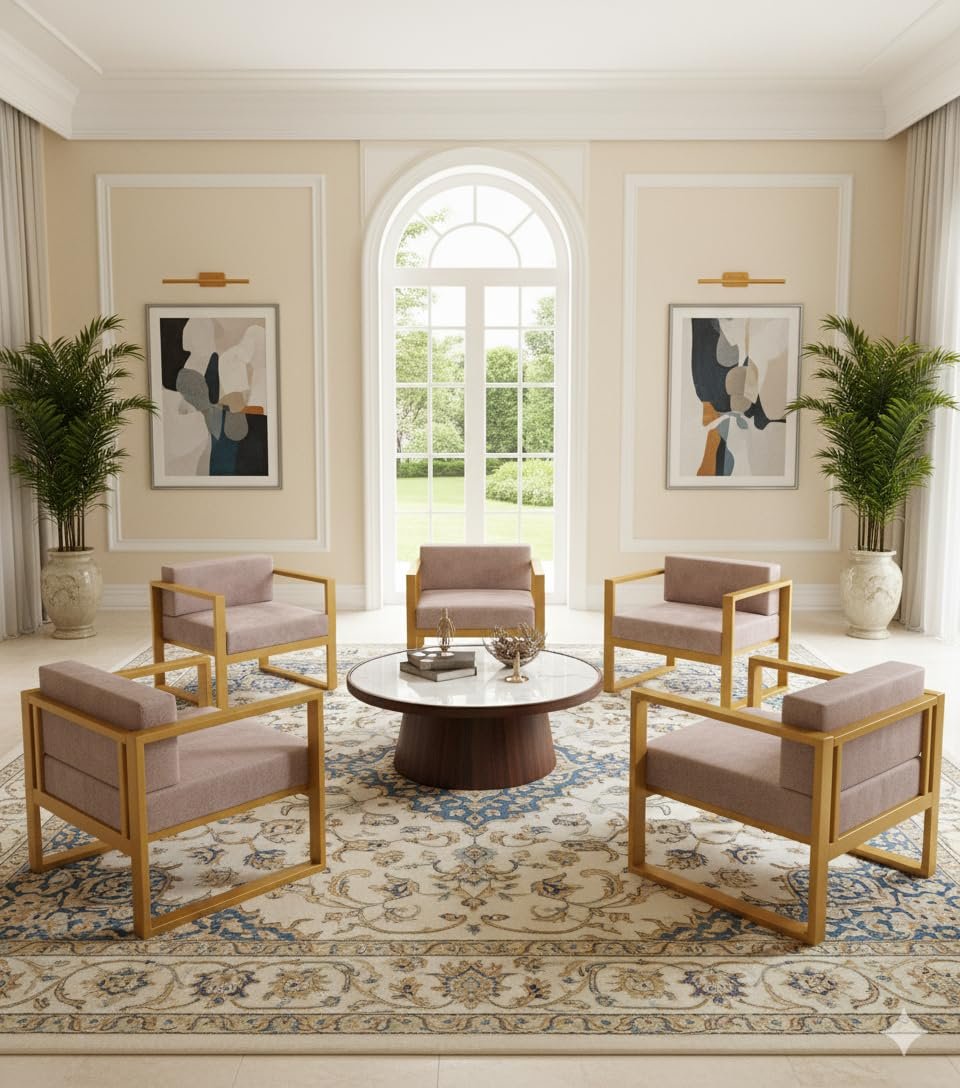 A stylish and durable single-seat chair crafted from high-quality iron and metal with a rust-resistant powder-coated finish. Featuring a comfortable high-density foam cushion and a strong, stable frame supporting up to 200 kg, it adds a luxurious touch to living rooms, offices, or reception areas. Easy to maintain, ready to use, and proudly Made in India.
