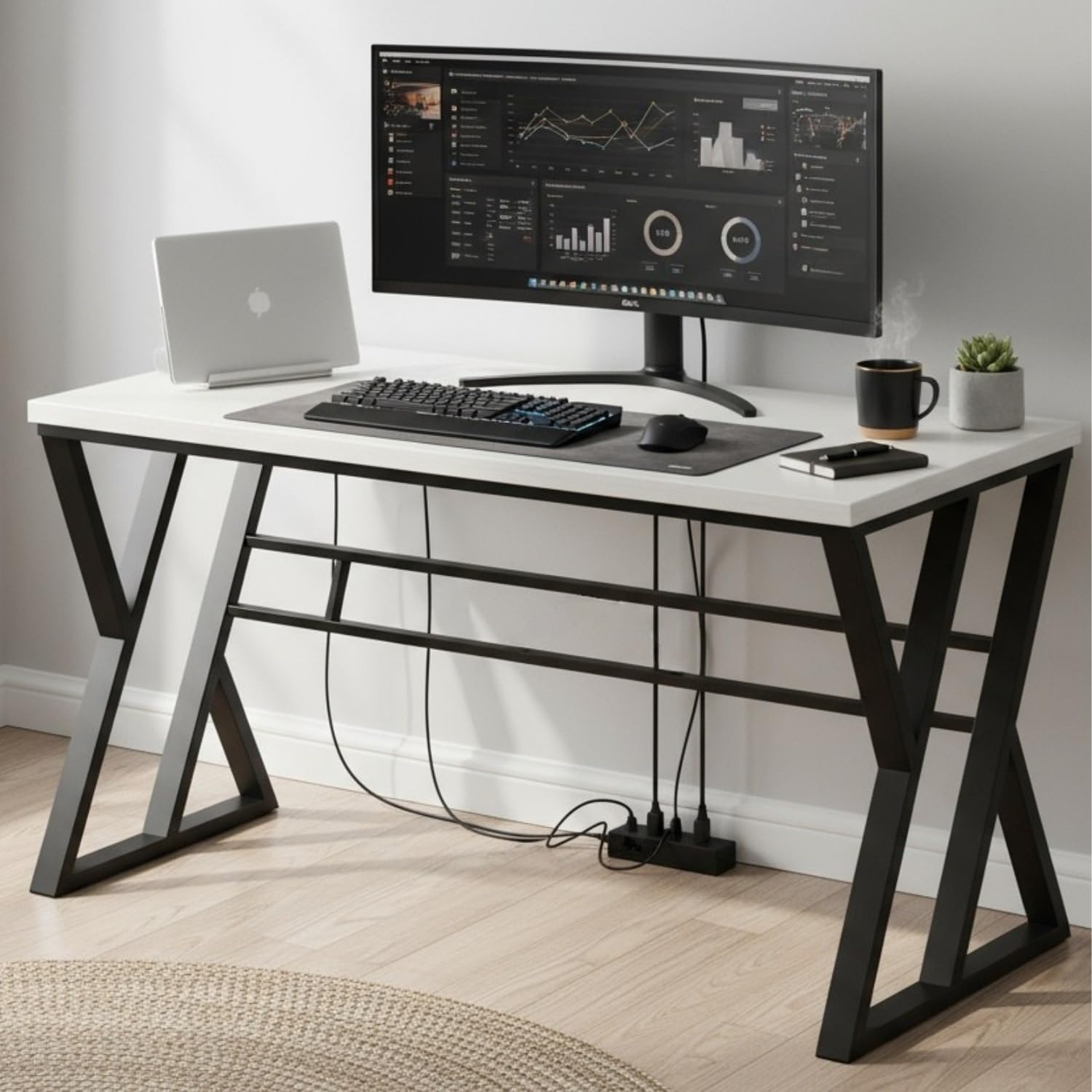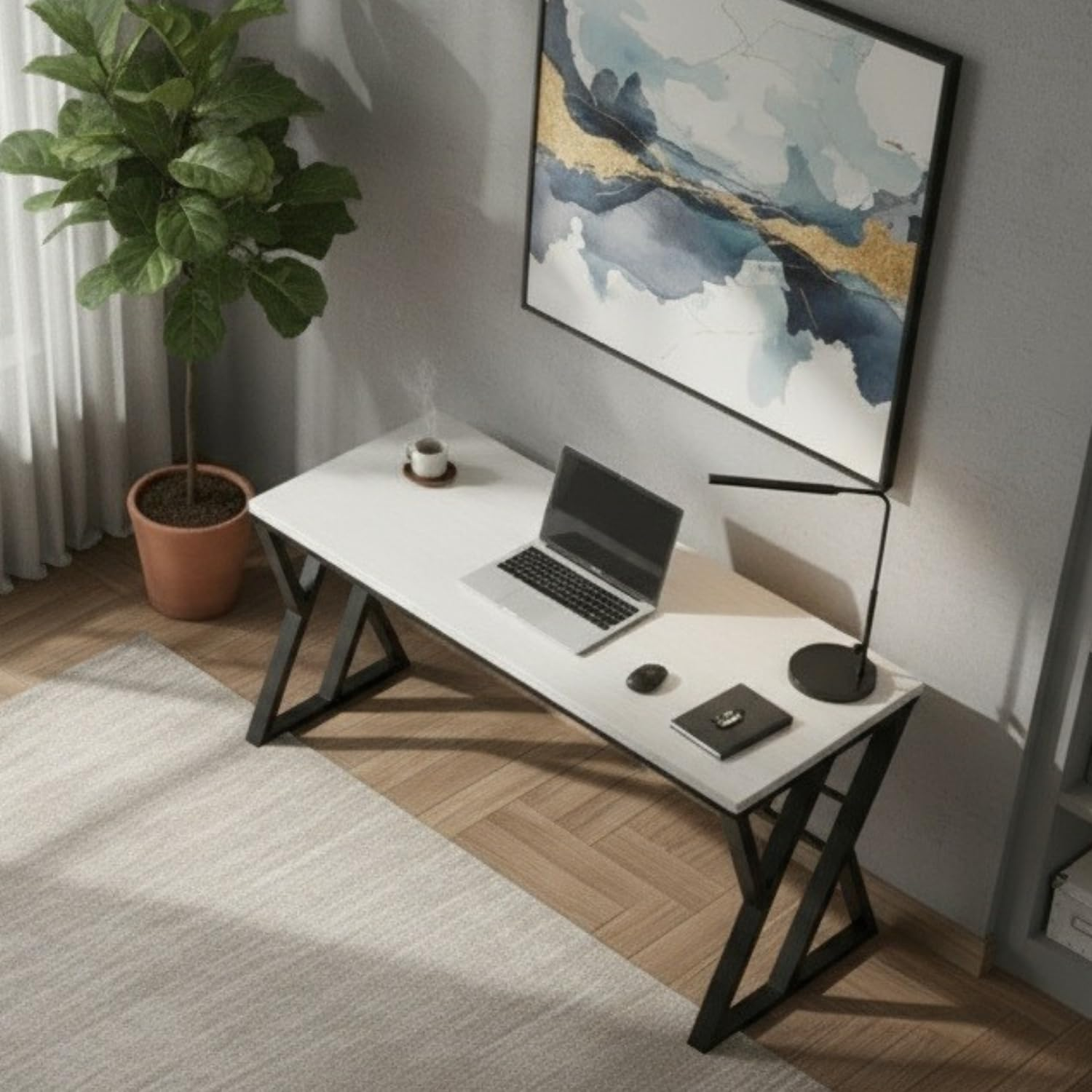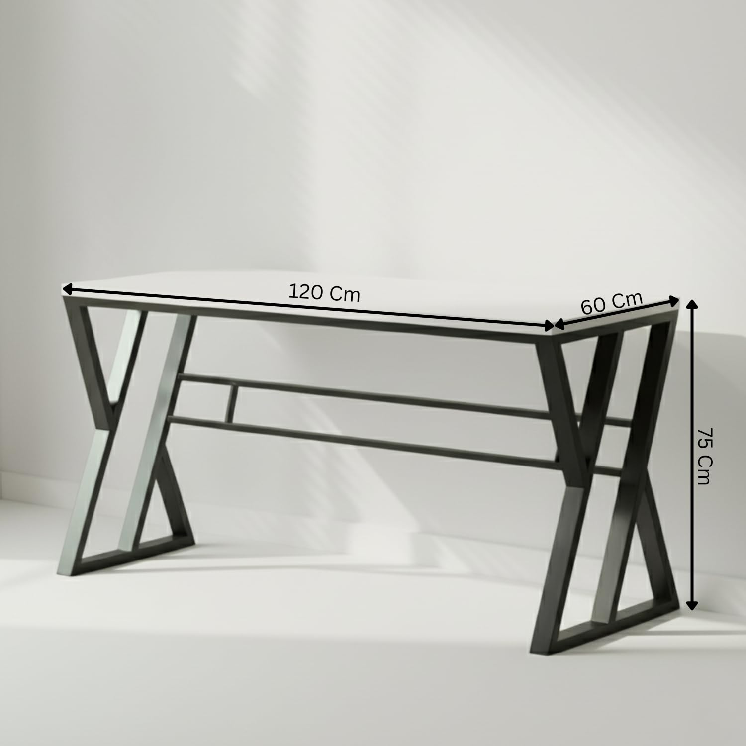 Stylish and functional home office computer table with a spacious 120 x 60 x 75 cm design. Crafted with a durable white wood top and strong metal frame, this DIY workstation desk is ideal for PCs, laptops, study sessions, and everyday work.