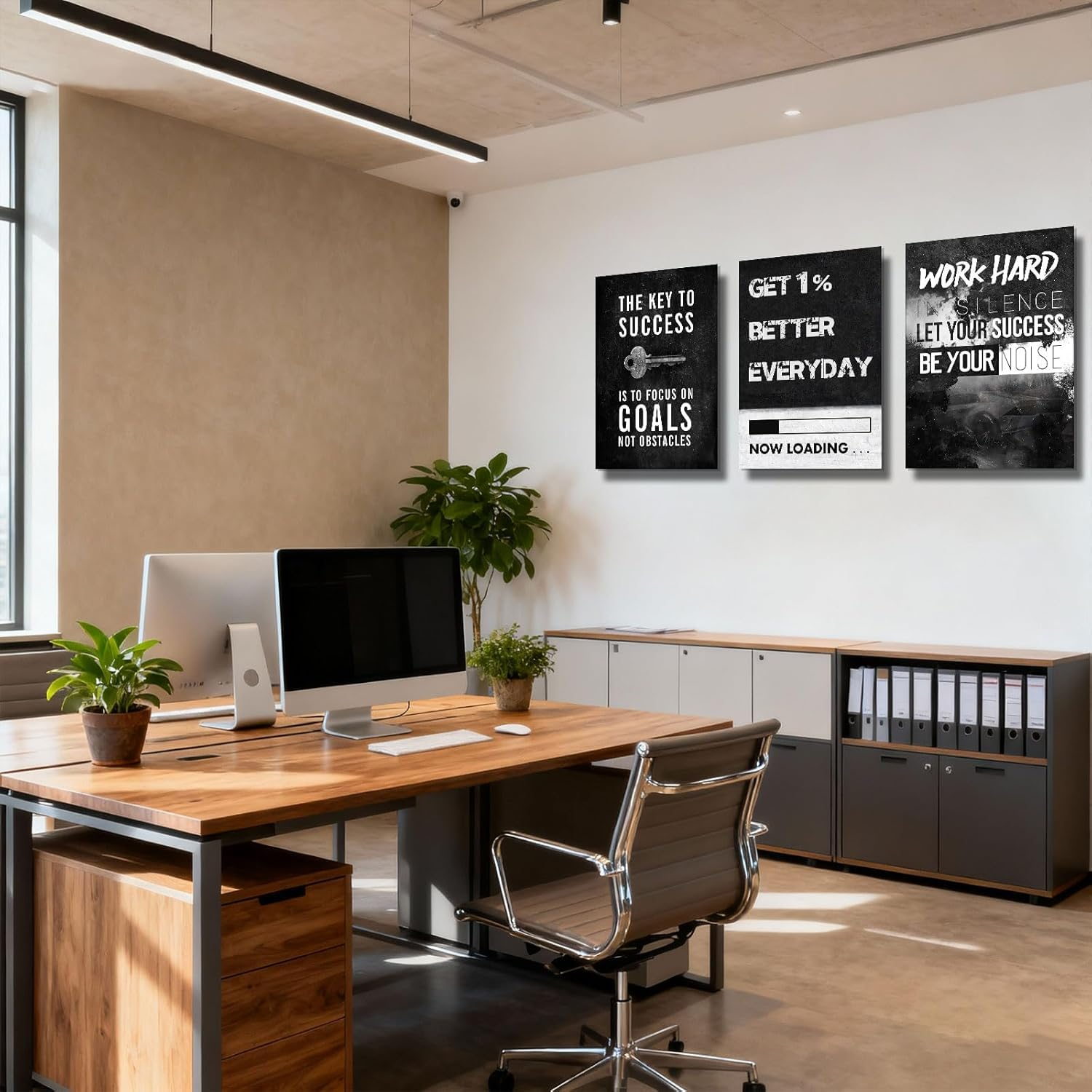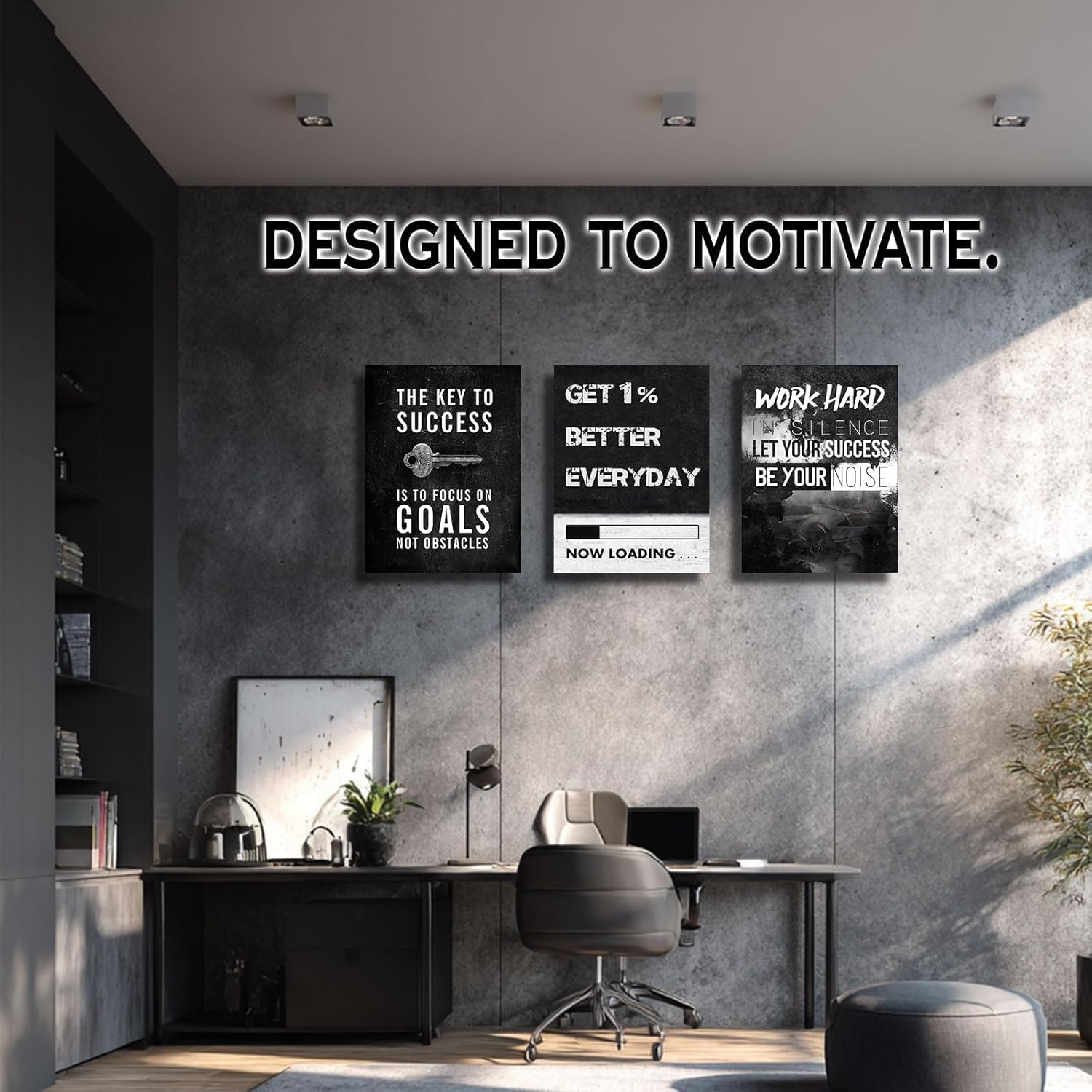 - Inspirational Set: Includes 3 bold black motivational wall art prints designed to inspire focus, ambition, and success in any home or office space.