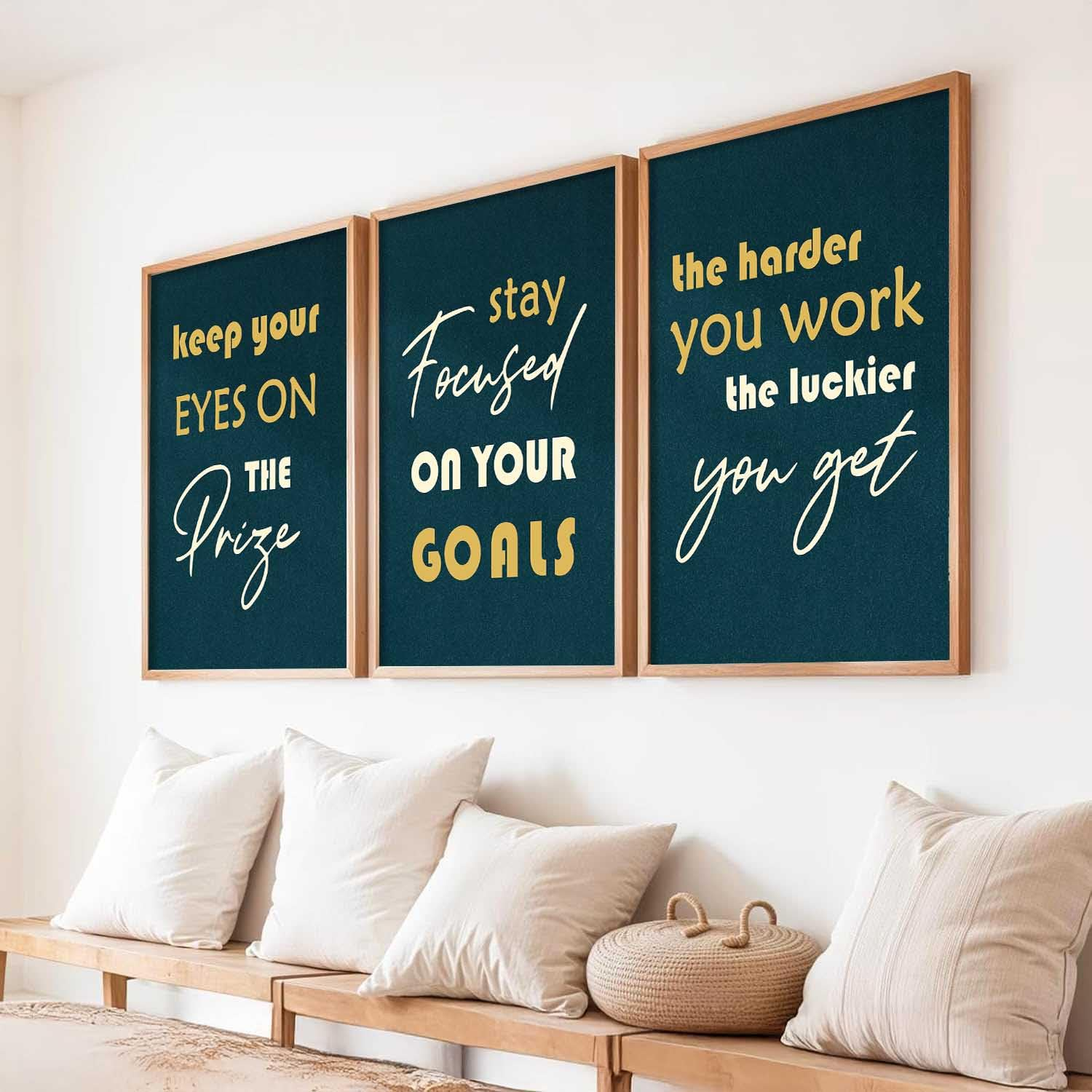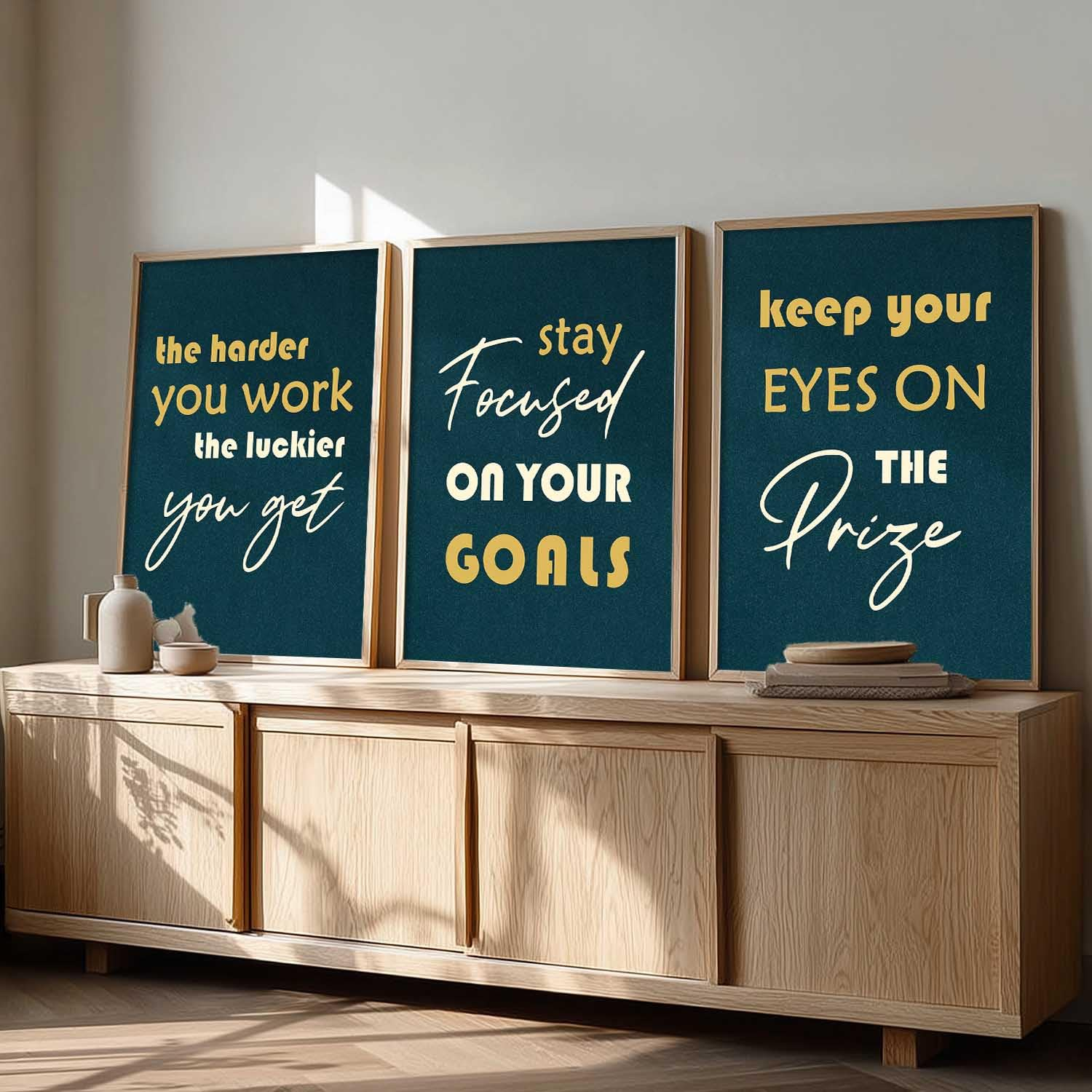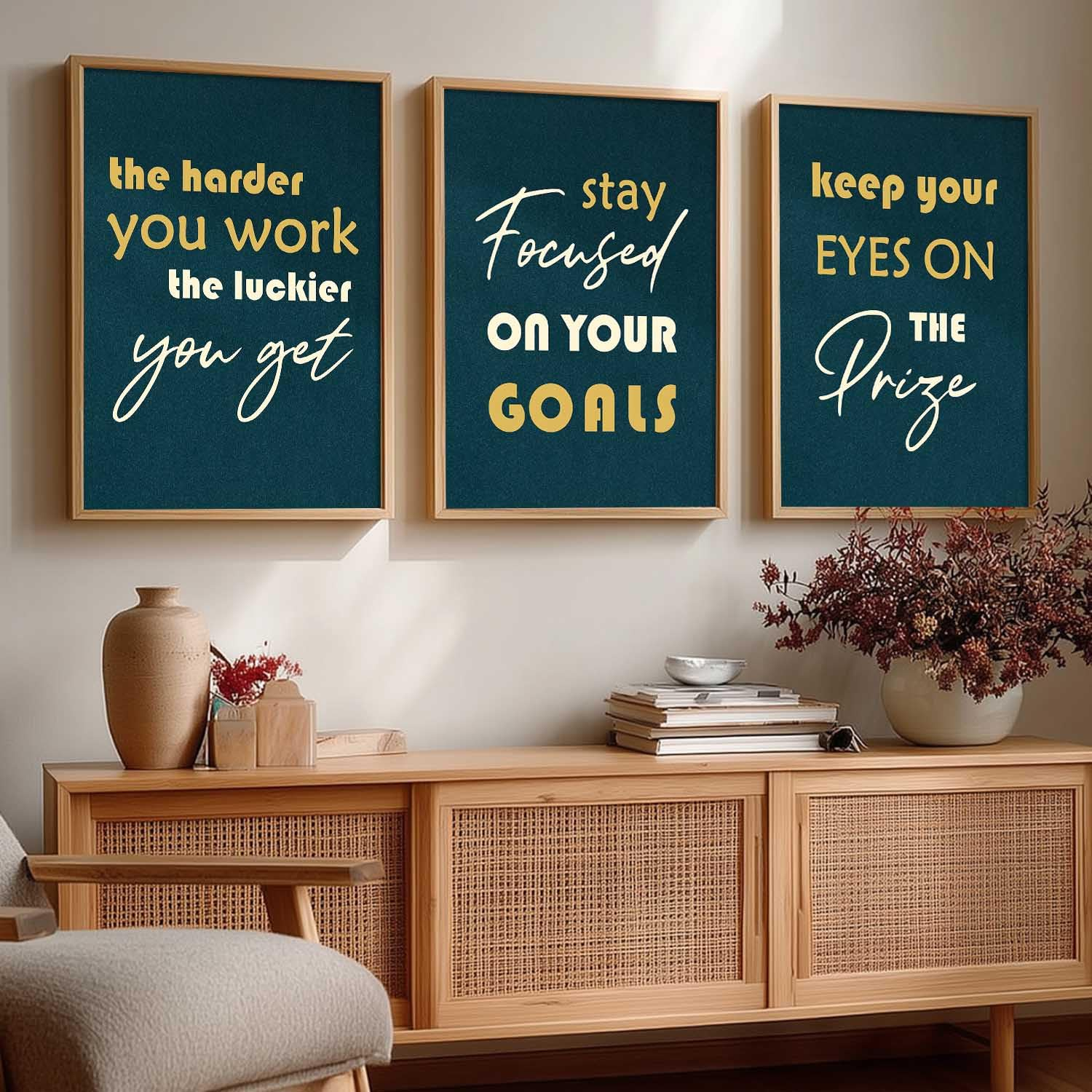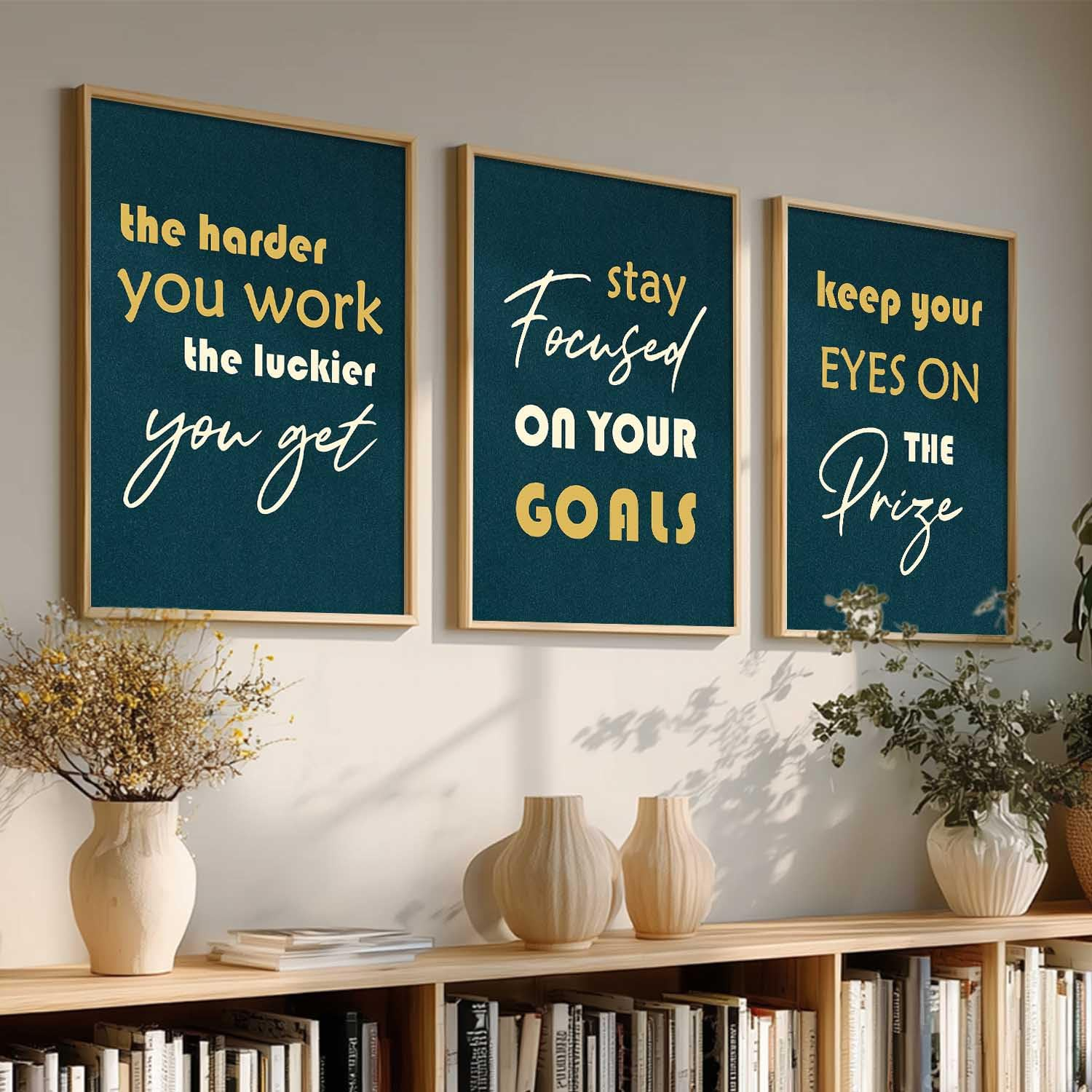 KRAYOG Motivational Framed Wall Art Posters for Office & Study Room – Digital Reprint Set of 3 (13 x 17 inches)