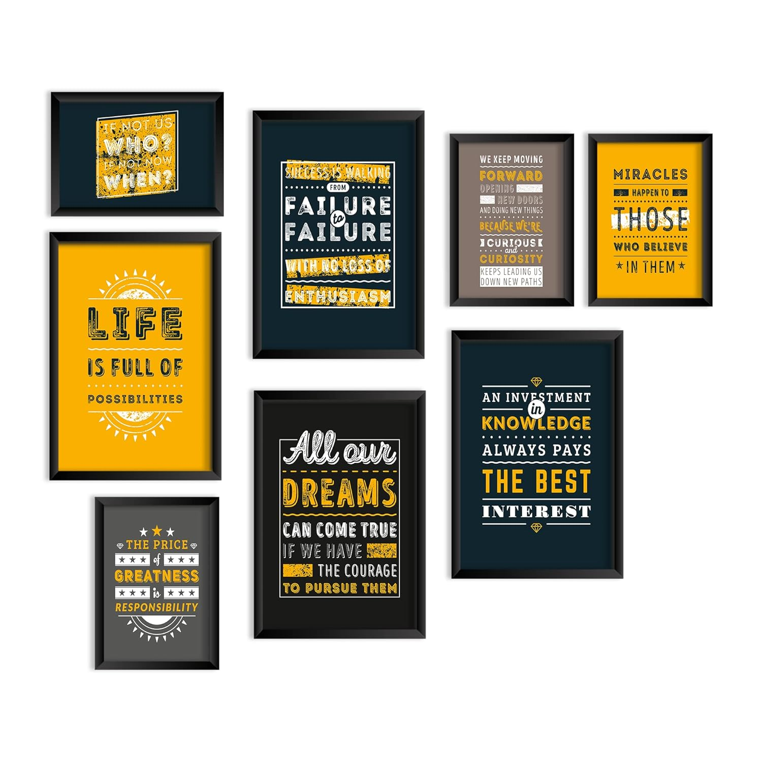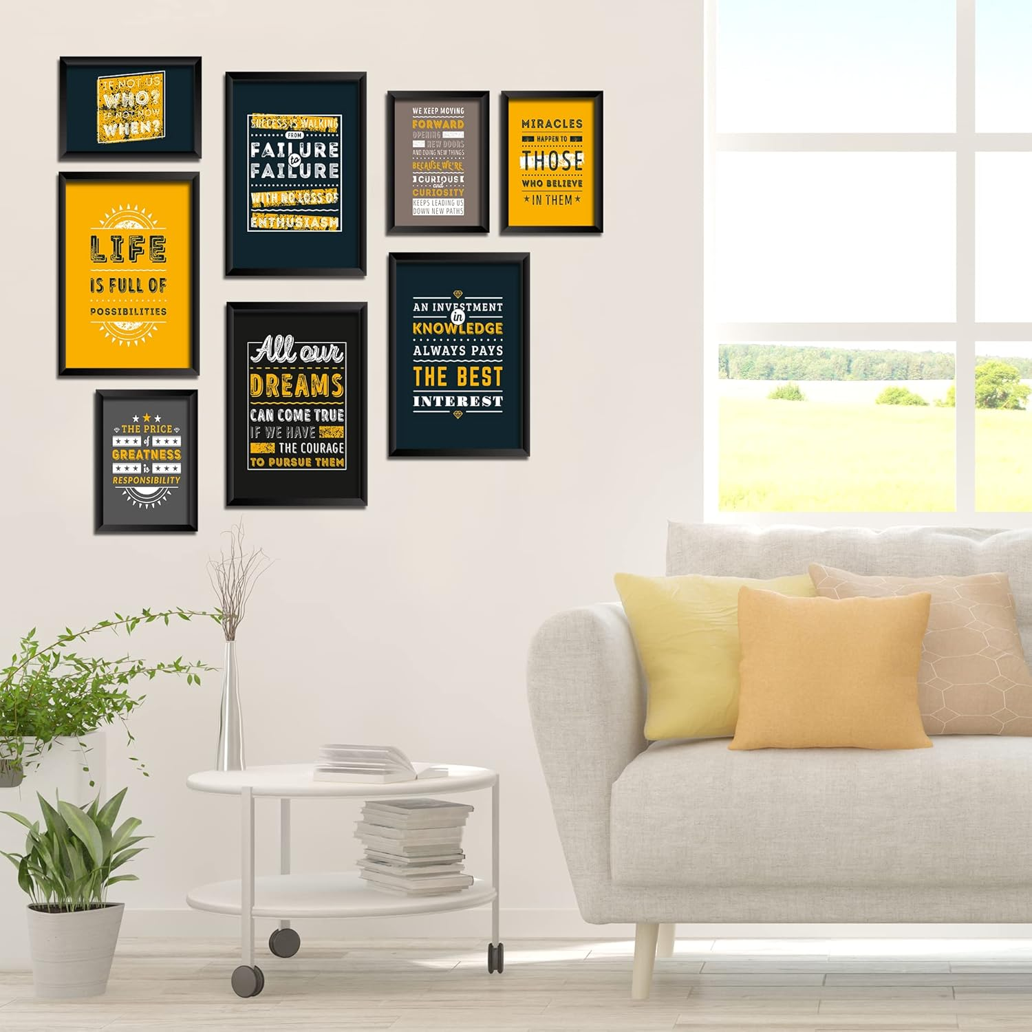 Add a touch of positivity to your space with this set of 8 inspirational and motivational framed wall art posters. Featuring uplifting quotes and modern designs, these frames are available in 9 x 12.5 inch and 12.5 x 18 inch sizes. Crafted with a protective front sheet and durable MDF backing, they are ideal for decorating your living room, bedroom, office, or workspace.