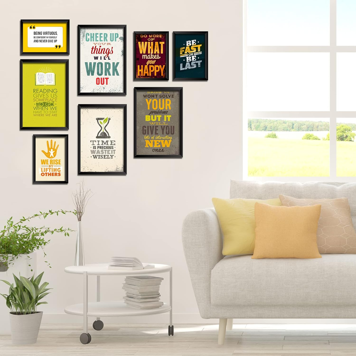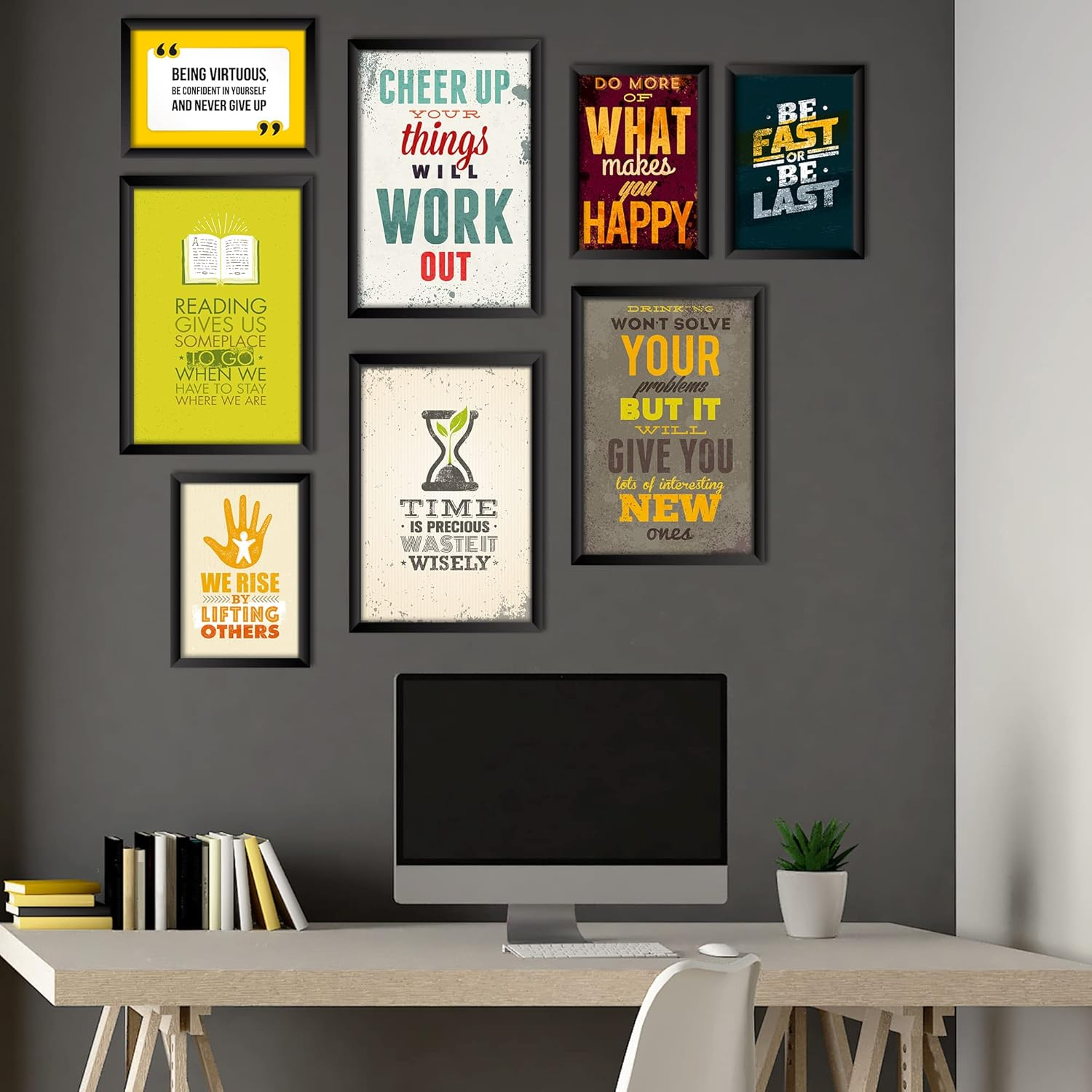 Add motivation and style to your space with this set of 8 inspirational framed wall art posters. Featuring uplifting quotes and modern designs, these frames are available in 9 x 12.5 inch and 12.5 x 18 inch sizes. Crafted with a protective front sheet and sturdy MDF backing, they’re perfect for enhancing your living room, bedroom, office, or workspace décor.