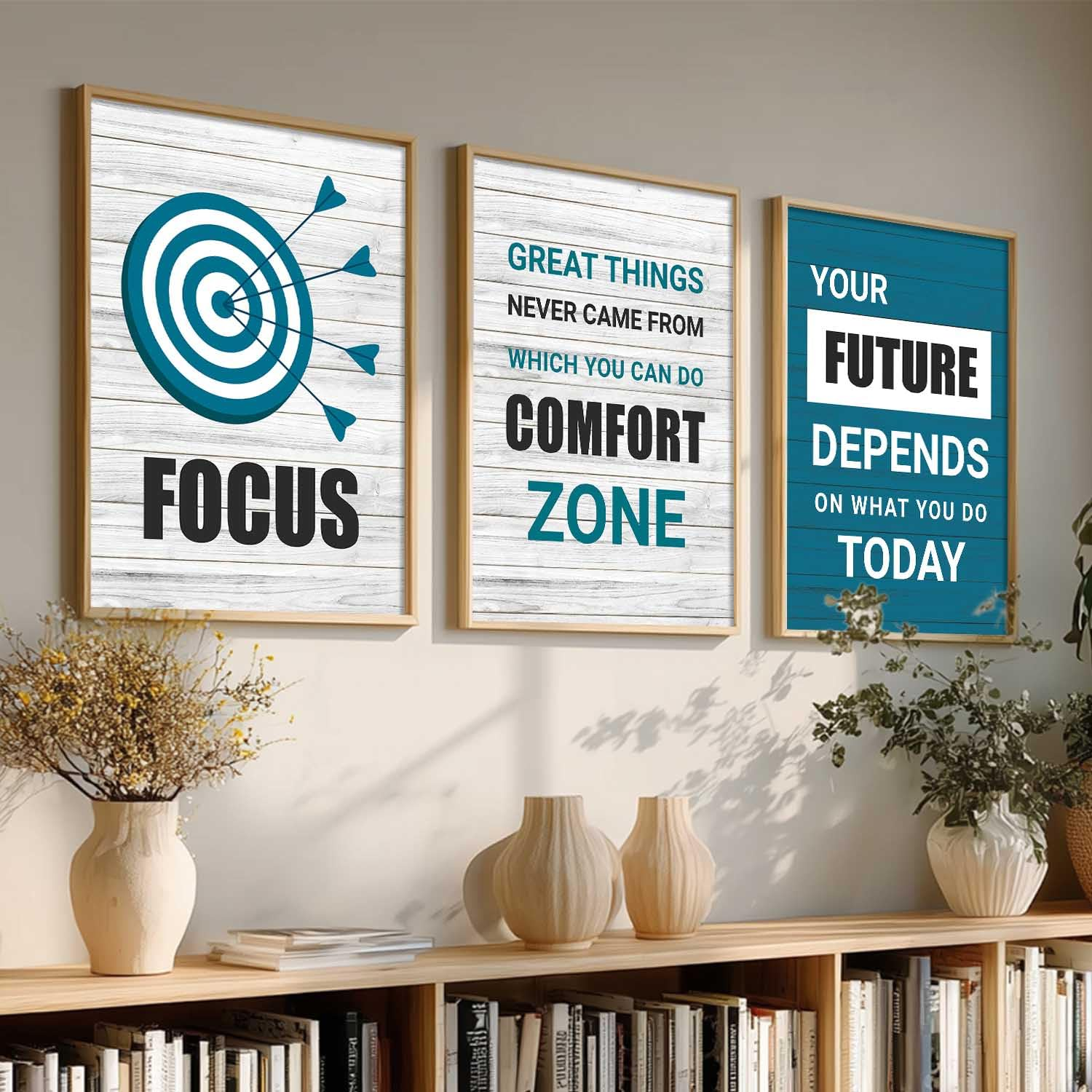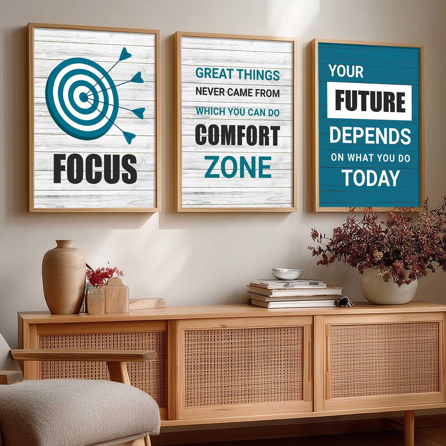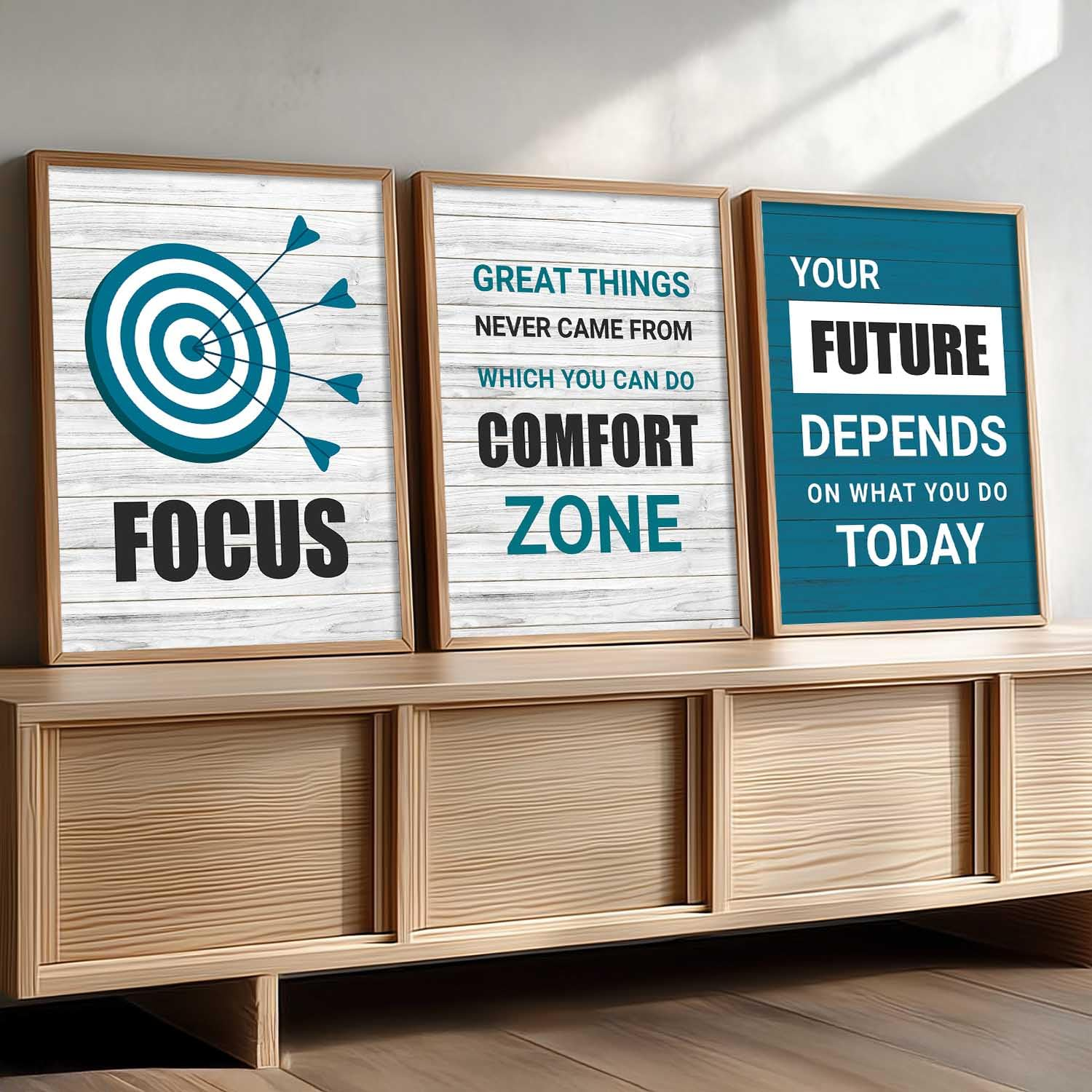 Inspire your space with this set of 3 motivational framed wall posters (13×17 inch). Featuring 300 DPI high-quality prints and durable 3/4 inch engineered wood frames, perfect for home and office décor.